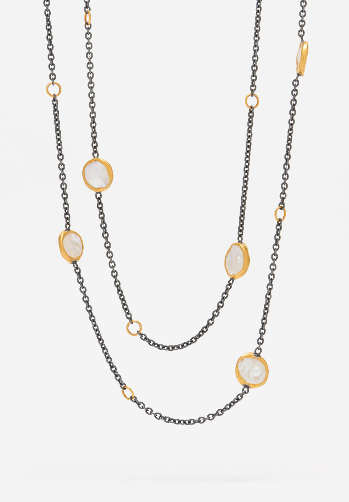 Lika Behar works most often with the highest purities of gold, 22K and 24K, to imitate the aesthetics of ancient jewelry—particularly the ornate styles of the Byzantine Empire. Born into a legacy of Turkish jewelers, Lika’s heritage is twinned with the history of gold—an effort she describes as “the highest purity of design.” The softness of 24K allows a specific degree of hand-carving and care unavailable in other, harder precious materials – something Lika relishes in as she sculpts her organic, lightly deckled bezels and chains.