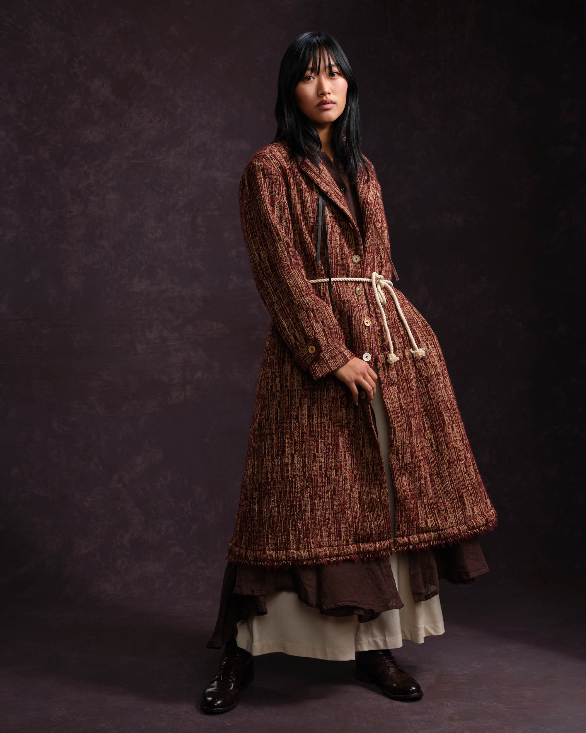 In a multicolor textured jacquard, delightfully mismatched buttons and a leather-attached horn toggle closure, the Jorunn delivers just the right dose of whimsy to your closet.