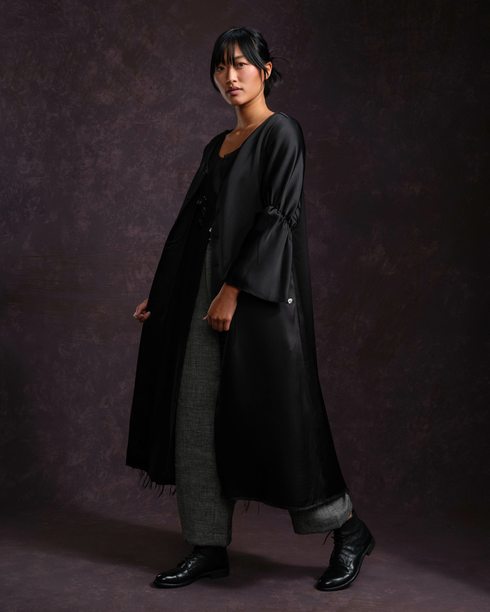 Exploring the dynamic tension between delicate handicraft and artistic elegance, A Tentative Atelier pieces harness luxury with a distinctly Victorian flair. Their collections marry irregular hems, tonal stitching, collage patchwork, Edwardian florals and translucent overlays. This variety results in a rich tapestry of innovative silhouettes with a centrally romantic aesthetic.