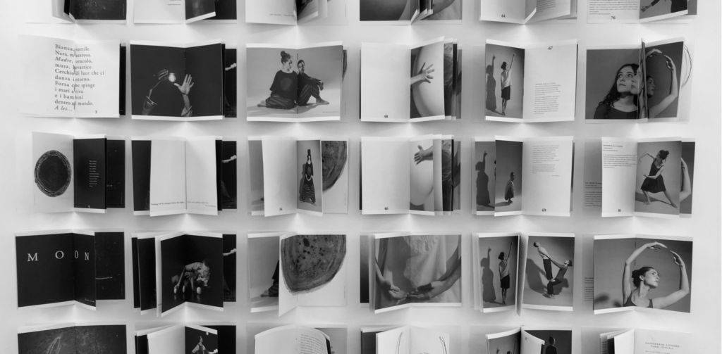 Kinya Shimizu, Japanese artist and dear friend, represented the Moon for us with different techniques. They are the [featured] circles of the latest collection: full moon, black, waning, crescent. The moon is circular and the circle is a very important figure for me. My life is a continuous search in an attempt to connect all the things I love. Just like a big circle.