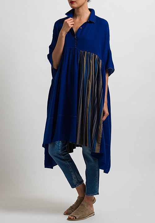 The rich blues and browns speak to Pero’s unique use of color, which is constantly evolving. The wools, silks and cotton silks offer Aneeth Arora an opportunity for her to change and create lasting, luxurious clothing.