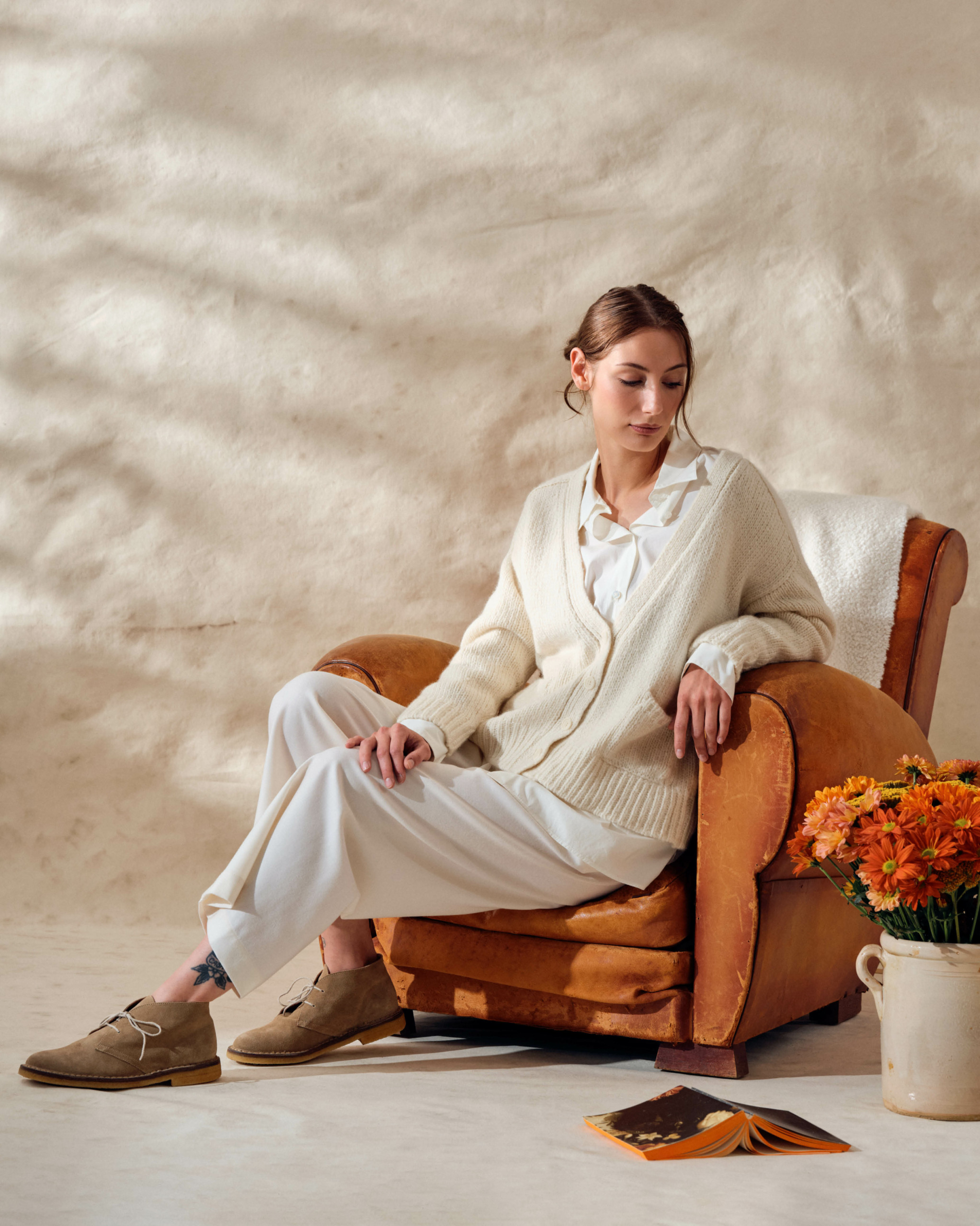 Cashmere & Silk Waffle Knit Grandpa Cardigan in Brown & Beige
