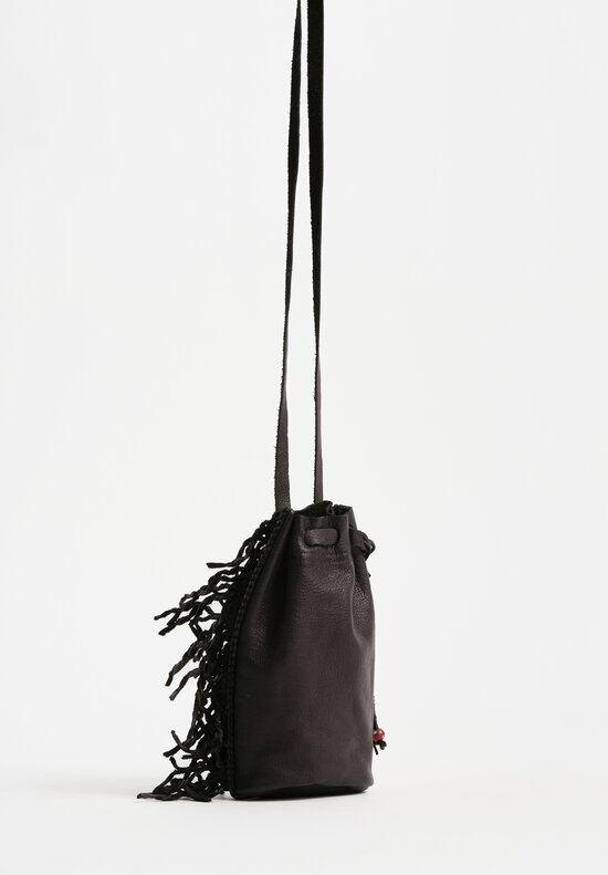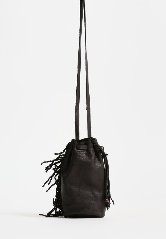 Calf Leather Small Handmade Shell Drawstring Bag in Black