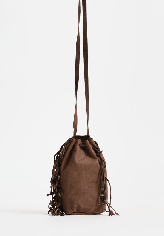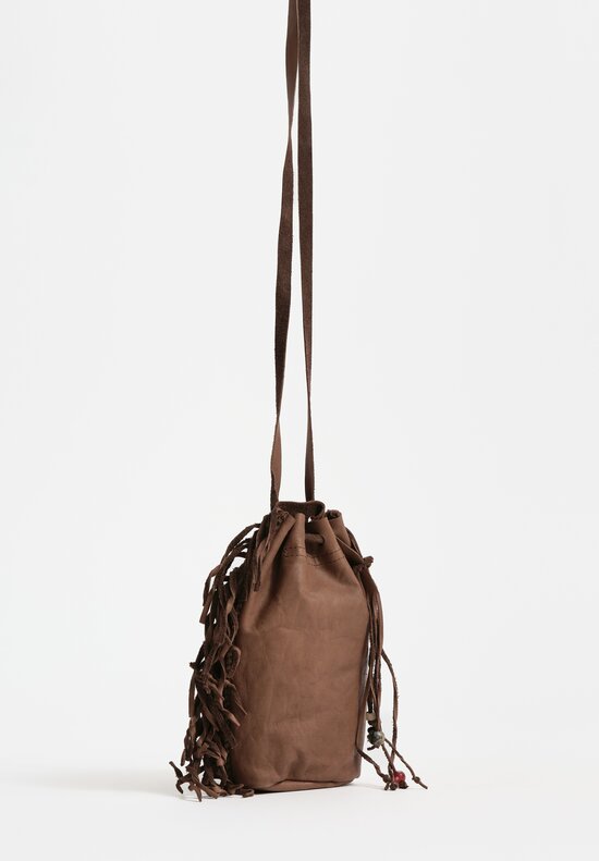 Calf Leather Small Handmade Shell Drawstring Bag in Military Green Brown