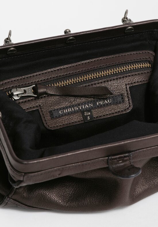 Matte Leather Small Handmade Pochette Frame Bag in Black with 625 Silver Chain