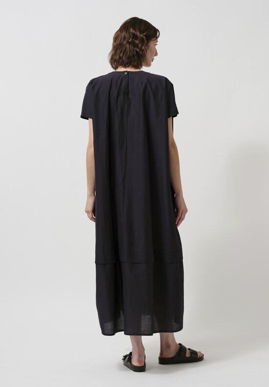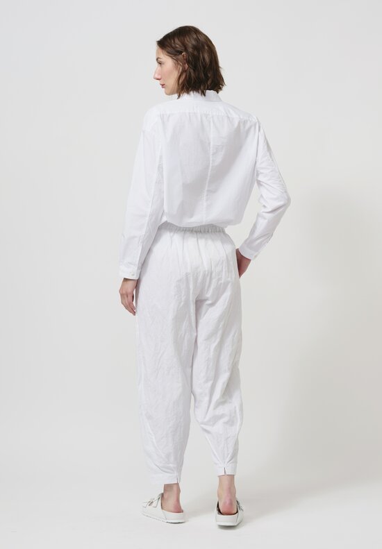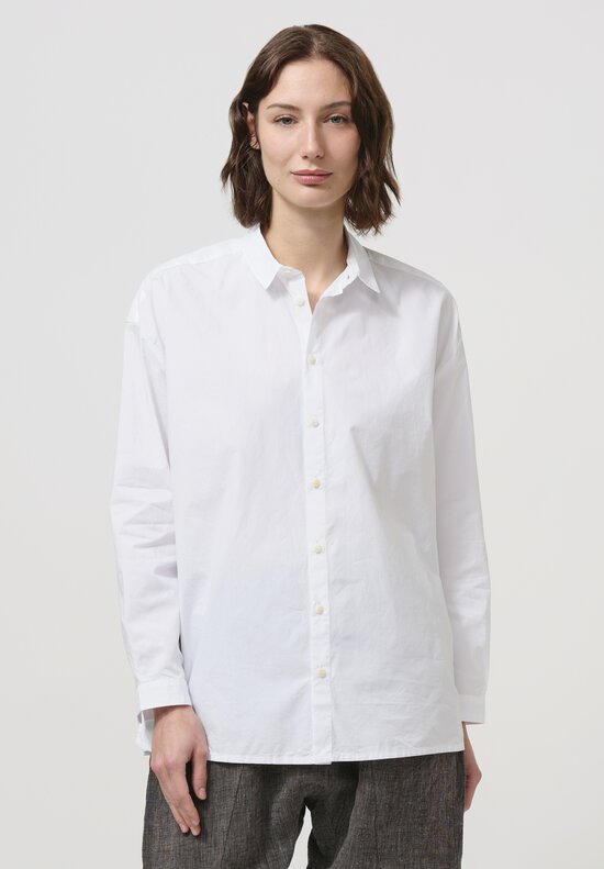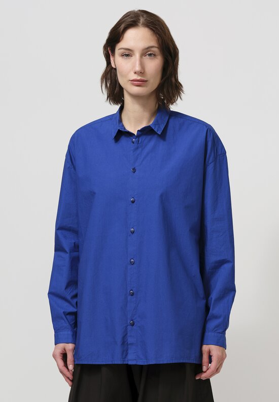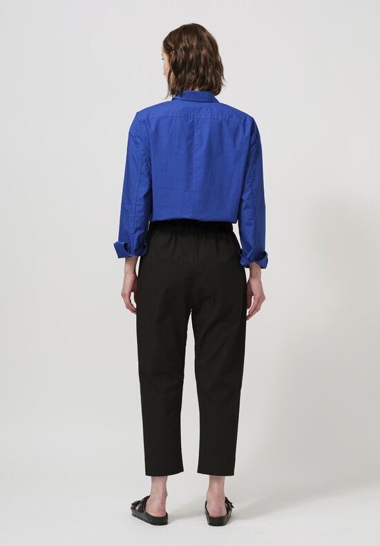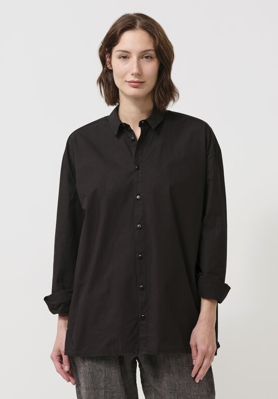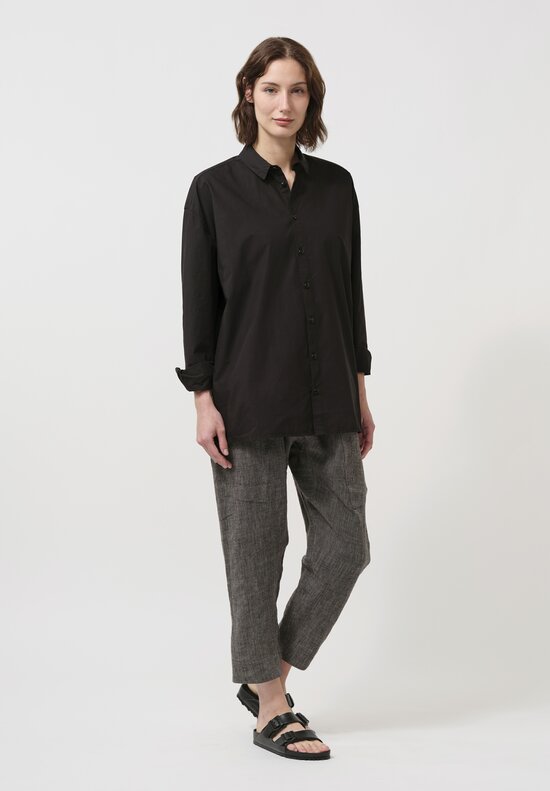 Silk & Linen Drawstring Blouson Button-Down Shirt in Plum Brown