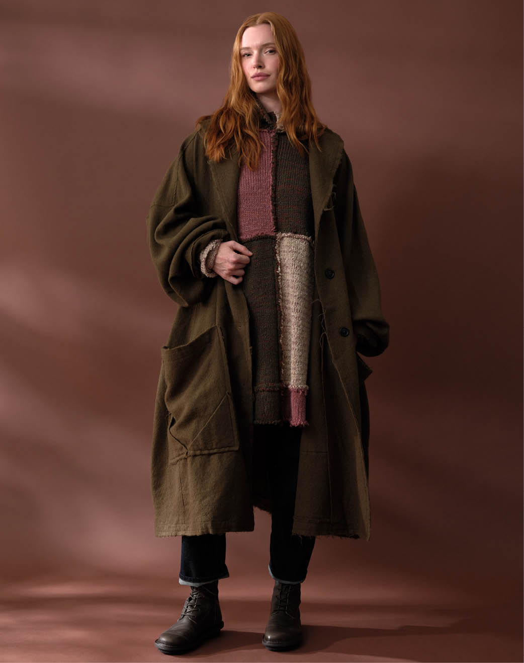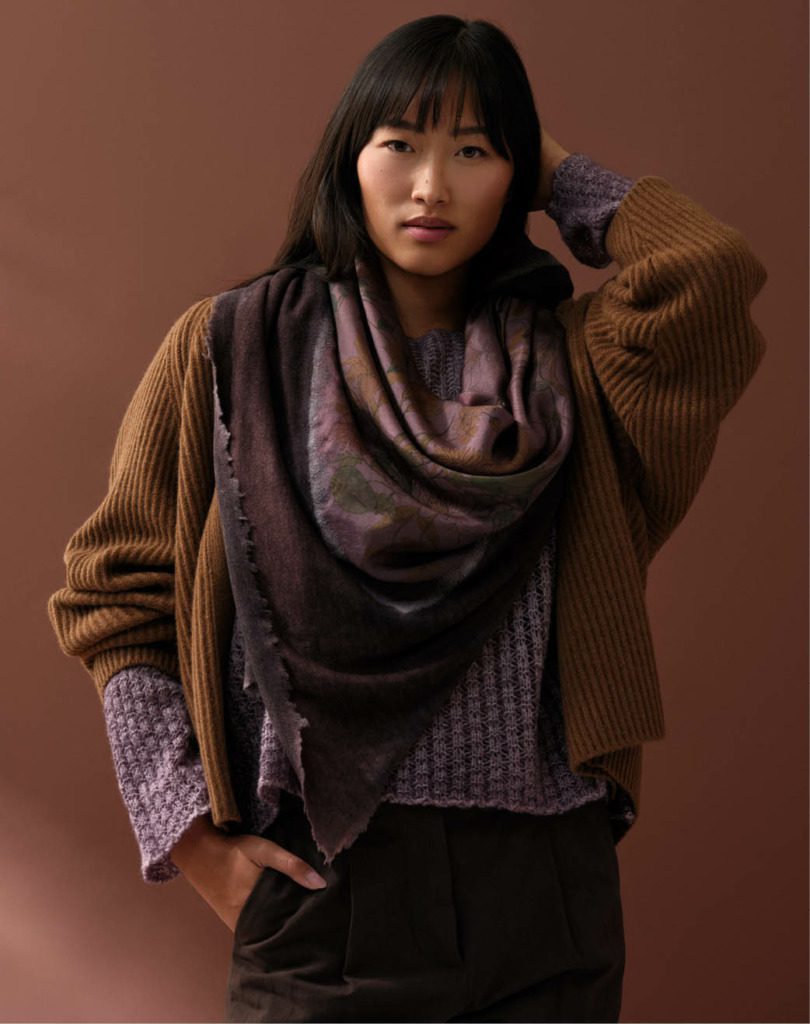 Cashmere & Vintage Silk One-of-a-Kind V-Neck Sweater in Brownie Brown Mandala