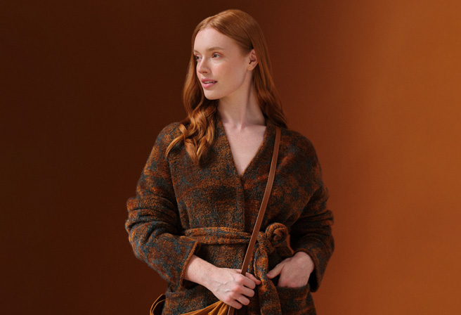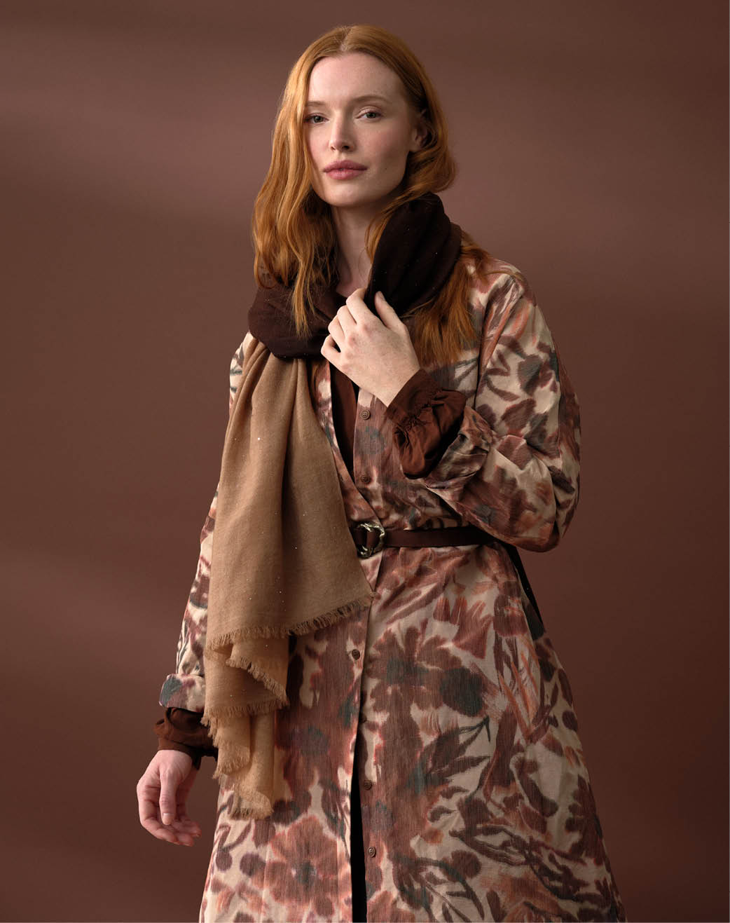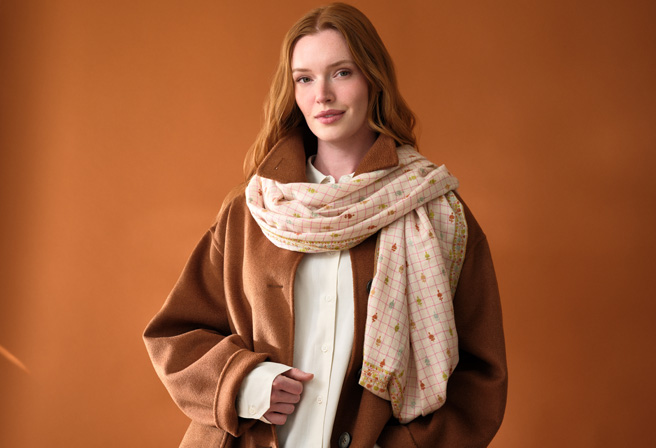 Hebe Floral Jacquard Coat in Stone Grey & Pink