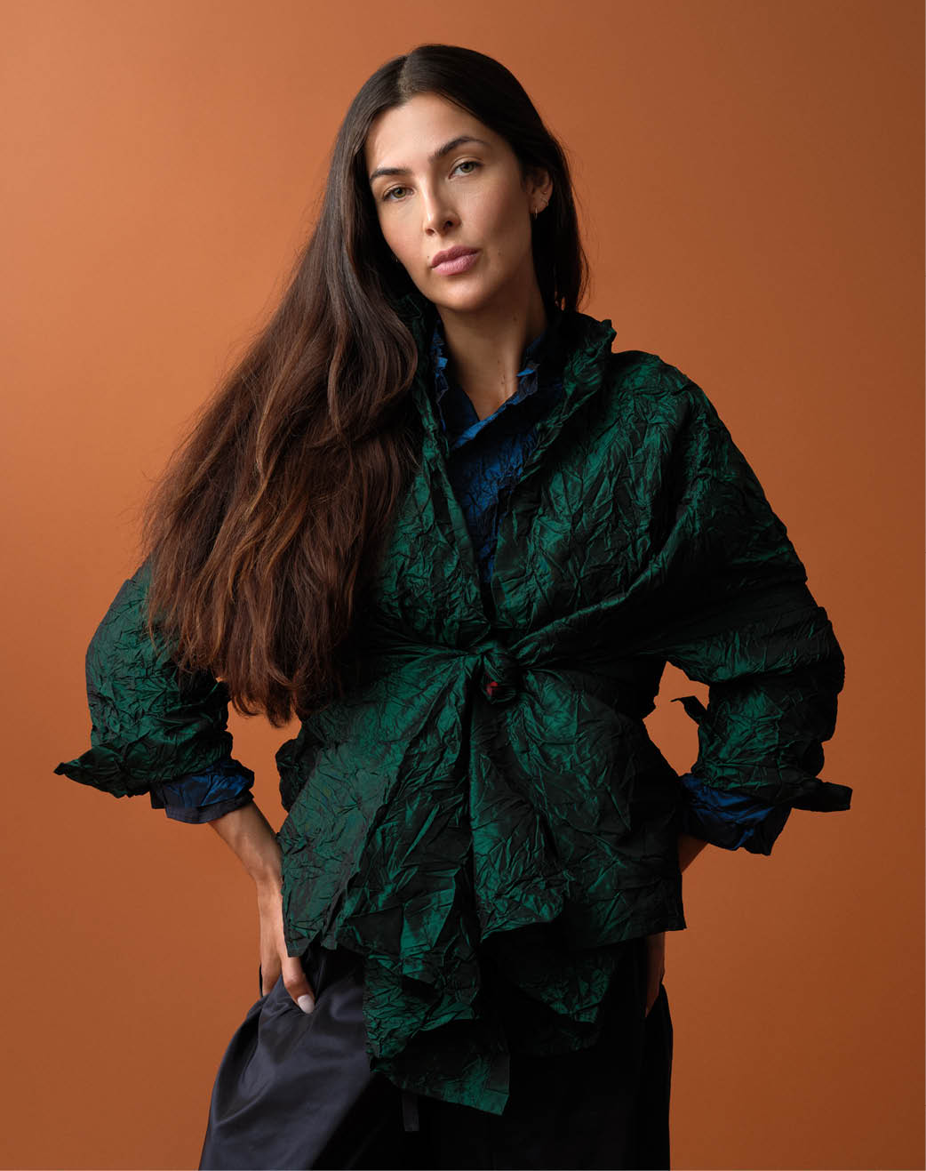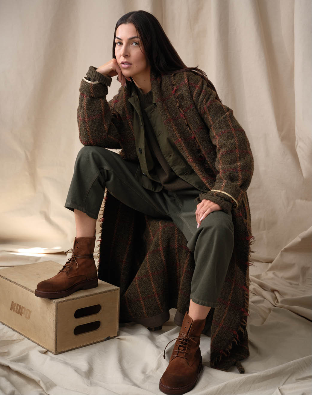 Silk & Cotton Hiero Kimono Coat in Navy, Green & Cream