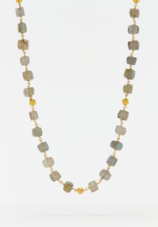 18K Gold Barrel & Labradorite Necklace