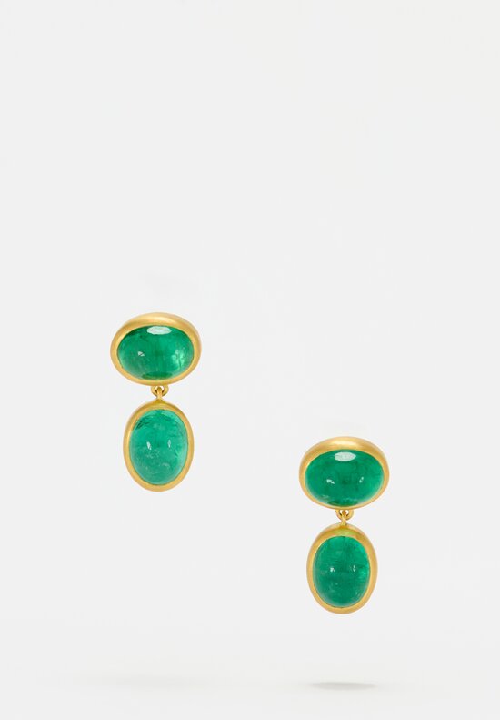 18K Gold & Emerald Pear Double-Drop Earrings with Diamond Pavé