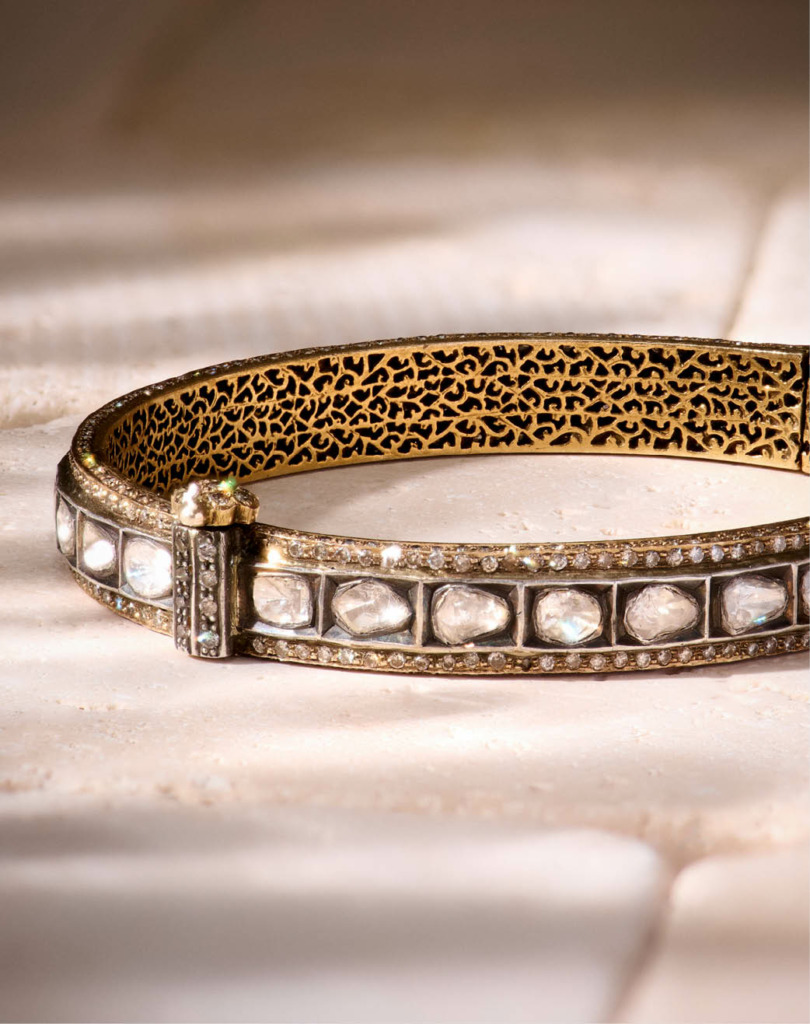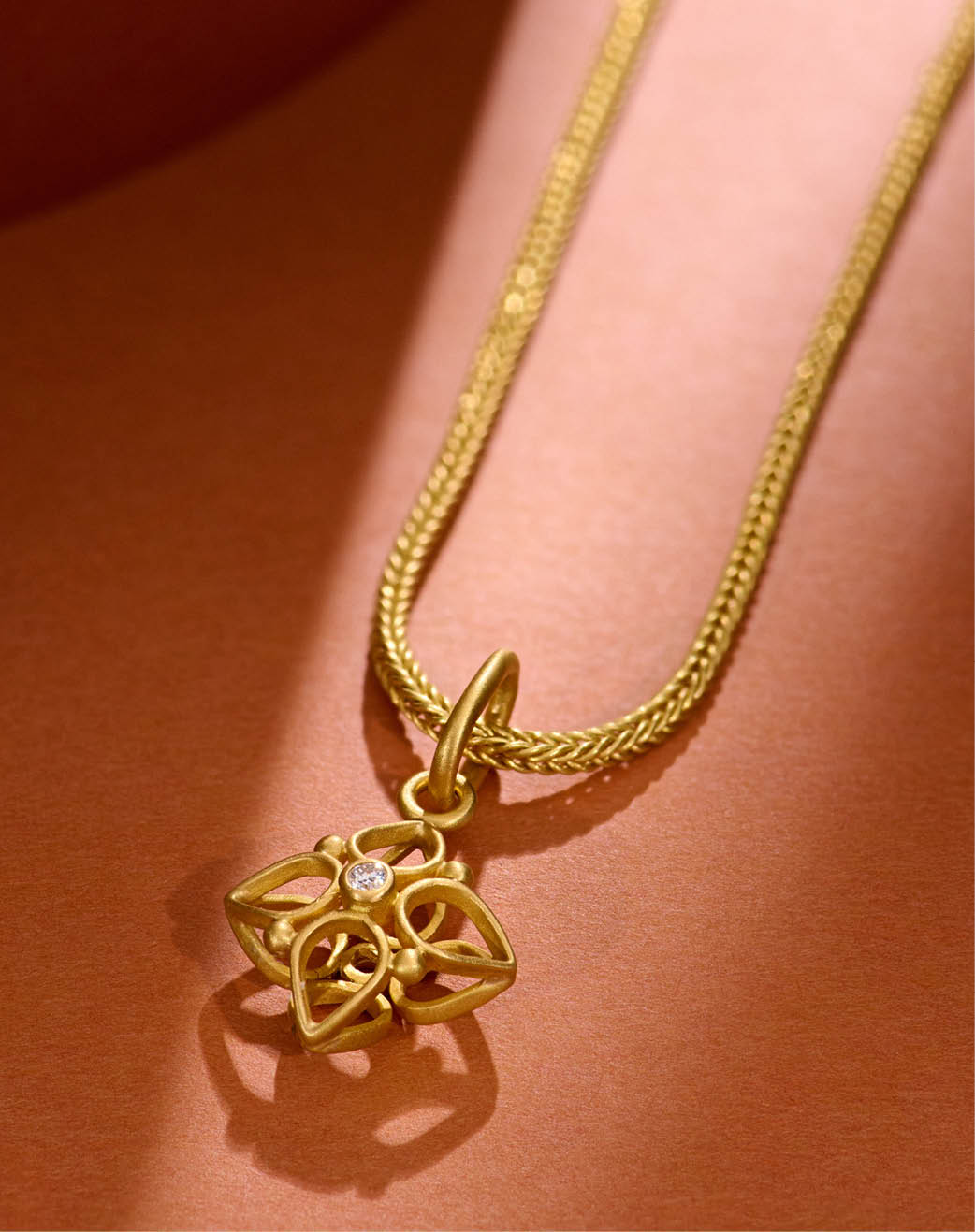 18K & 22K Matte Gold Cottonwood Cage Drop Earrings with Diamonds