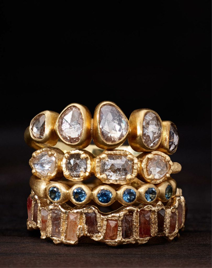 18K Gold ‘Metamorphic’ Double Drop Earrings with Herkimer Diamonds