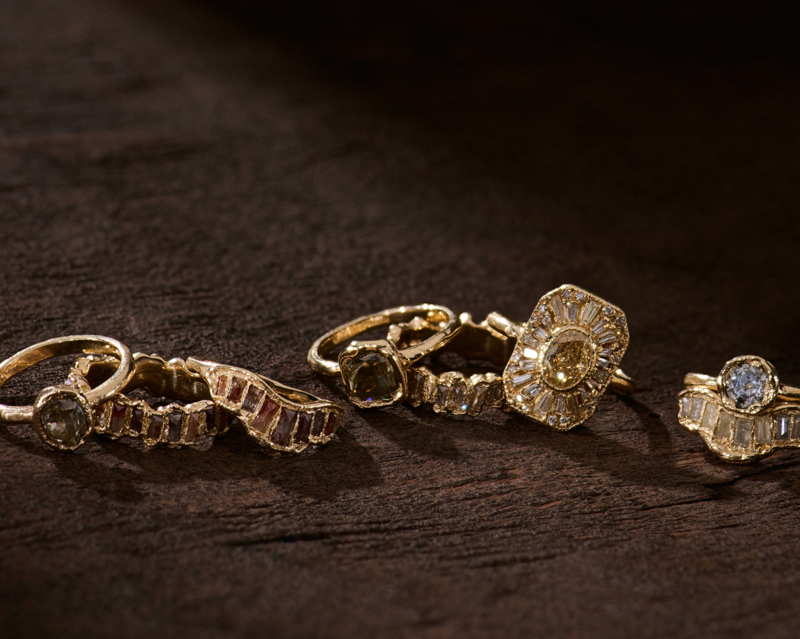 20K & 22K Brushed Gold Donut Bezel Ring with Diamonds