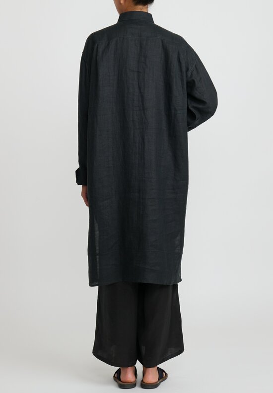 Cotton Concealed Button-Down Placket Smock Tunic in Mars Black