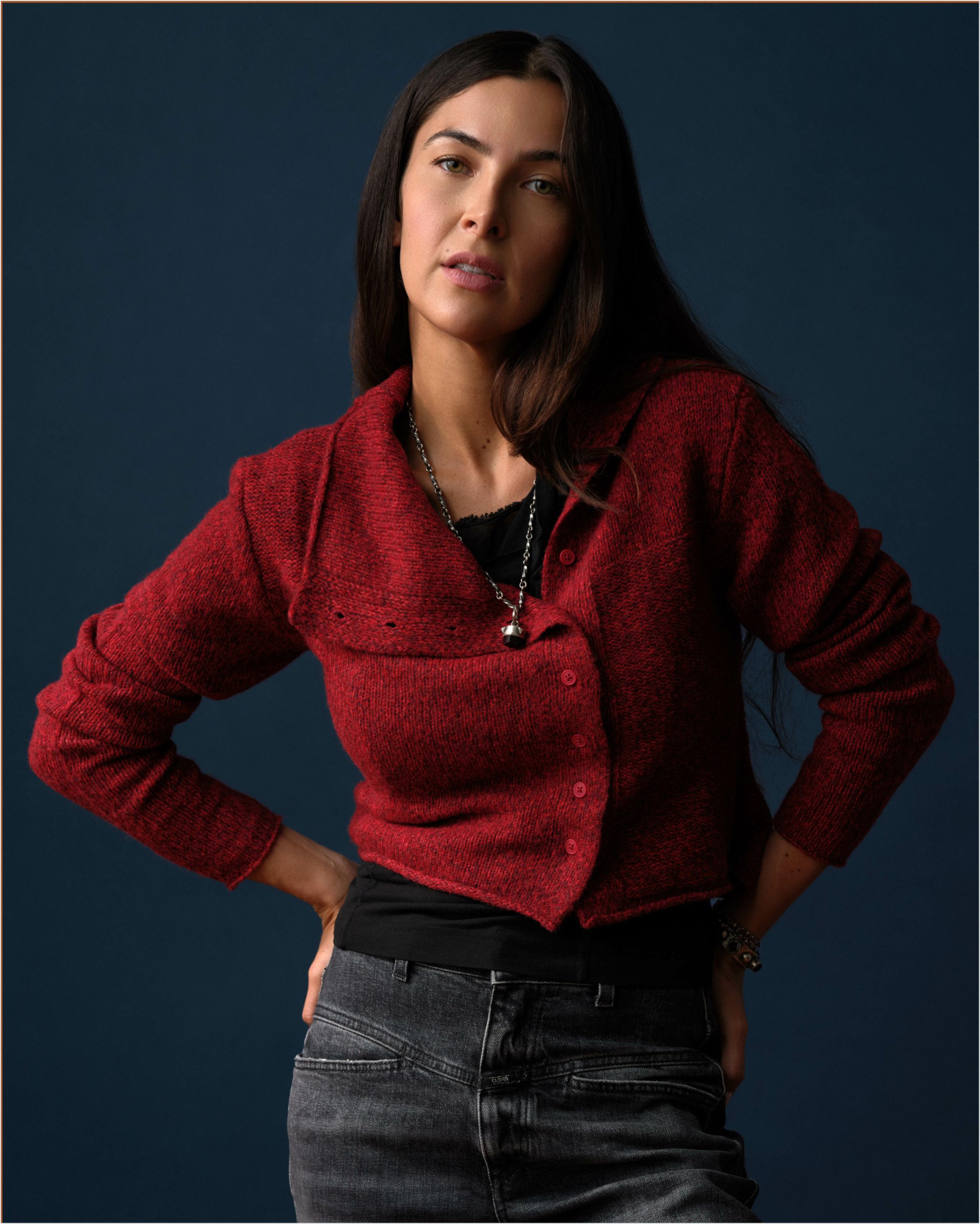 Cashmere & Silk Hand-Painted Sweater in Nero & Fuoco Red