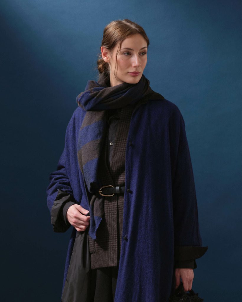 Daniela Gregis’ cold-weather-wear has all the essentials to carry us into the next season: squishy alpaca hand-knits, crinkly cotton shirting and pragmatic water-resistant-but-cashmere-lined coats. With a palette of brown and blue, Daniela uses these materials to strike a balance between utility and sophistication.