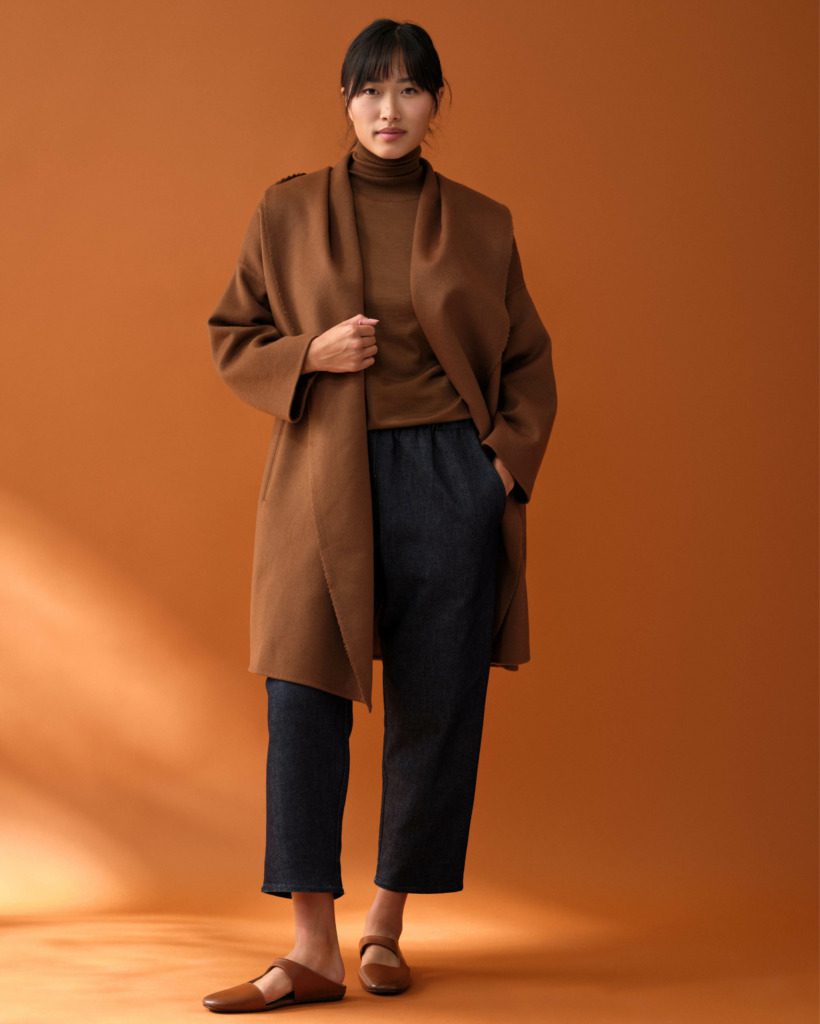 Cashmere & Silk Open Front Jacket in Peanut Brown