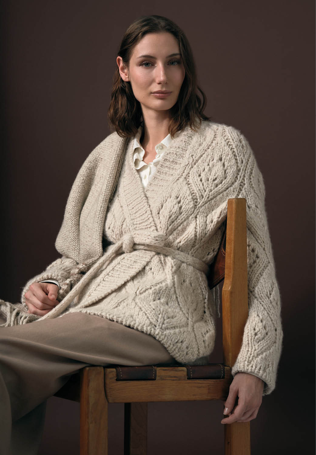 Cashmere Silk Hand-Knit Dolce Belted Cardigan in Ivory White