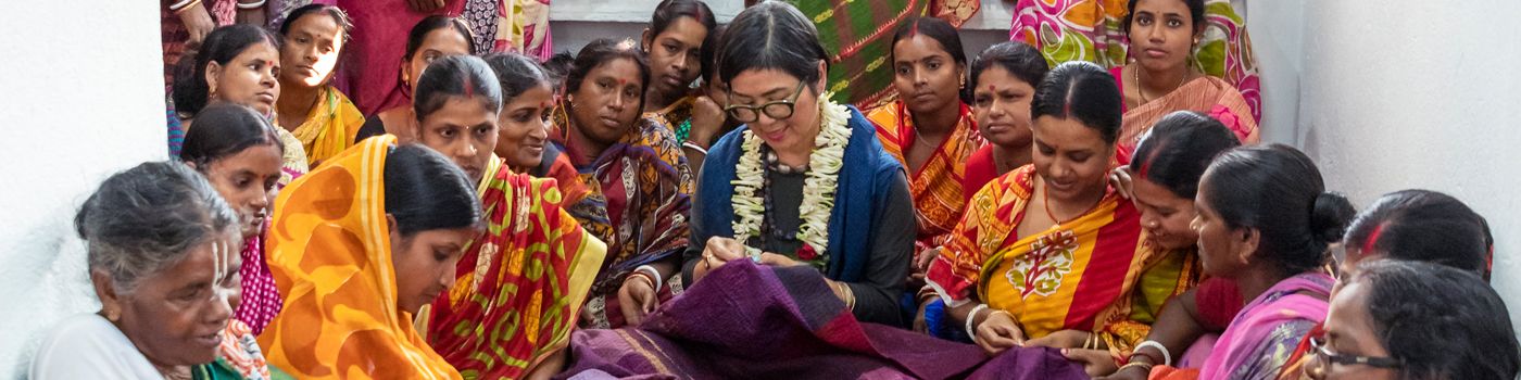 Mieko’s jackets are an amalgam of fine vintage sari cloth selected by Mieko twice a year in Western India and her own signature fabrics. Kantha means “simple stitching” in Hindi and is a time-honored tradition in South Asia. It is defined by the long-running stitch that bonds two or more sari fabrics together. In the case of Mieko’s jackets, the Kantha stitching is done by women in a small cooperative in West Bengal who need up to 5 months to complete their meticulous work.