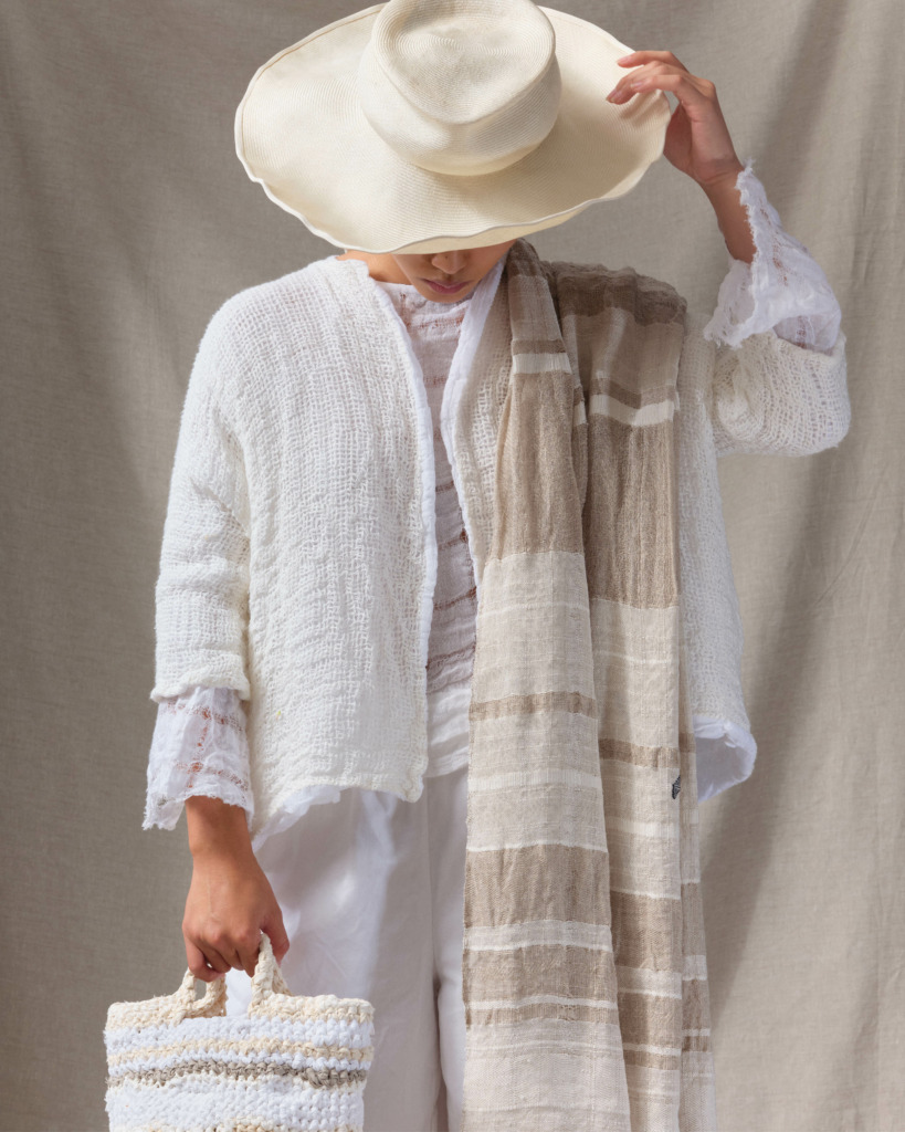 Inspired by the peace and quality of life in Bergamo, Italy, where her studio is located, Daniela Gregis’ look embraces an updated artisanal country feel. She has designed for close to 30 years, creating everyday clothing that is both intellectual and soulful and investing her time in traditional techniques and textiles. Many of her pieces feature hand-painted fabrics, hand crochet and imaginative textures. Her dyeing is made using natural colors with shades that evoke the natural landscapes surrounding her studio. Daniela focuses on creating universally relevant silhouettes for all women, regardless of age or body shape. Piously devoted to her materials, not an inch of her exquisite fabrics are ever wasted. Garments often feature creative use of the unused fabric: small inlays delicately sewn on, matching bags and belts deftly constructed and handkerchiefs and table linens produced from any remnants.