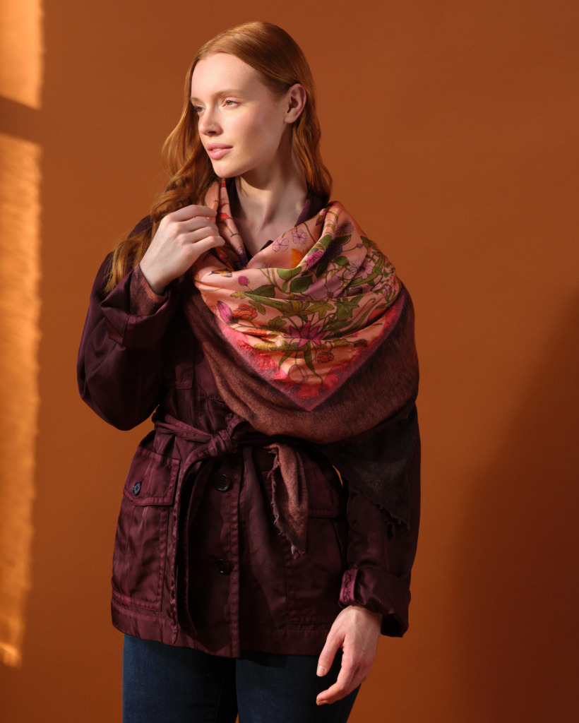 Each Faliero Sarti scarf is made of natural fibers such as wool, cashmere, angora, silk and linen. The scarves maintain the legacy and spirit of the company’s origins: excellent quality garments but original, comfortable, recognizable and very stylish. Celebrated for their colorful prints and fantastical ombre dyes, Faliero Sarti scarves mix practical luxury with everyday wear.