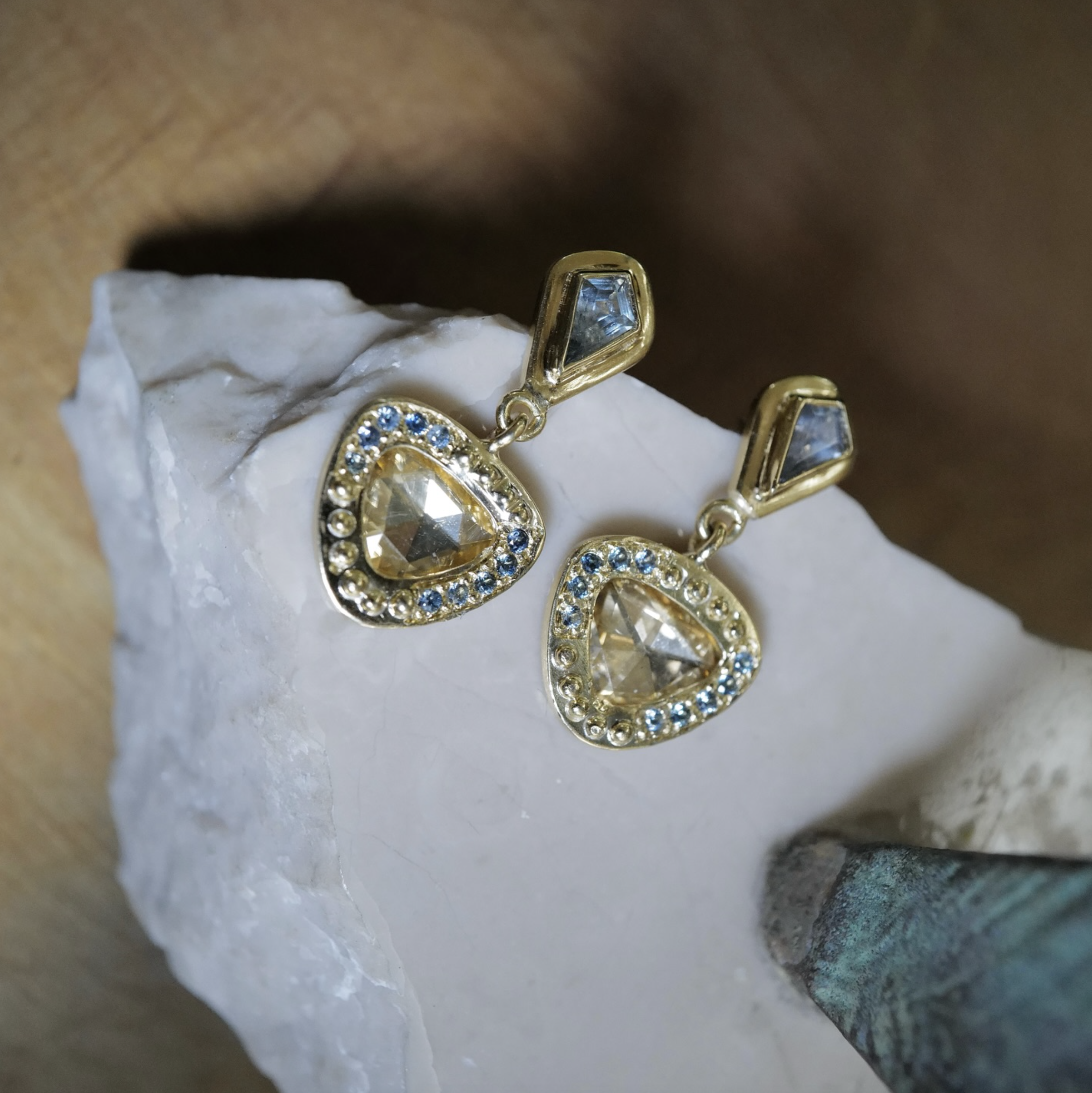 A fascination with the intrinsic beauty of gold, the most ancient precious metal, and with ancient artifacts and gemstones are the foundations of Karen Liberman’s designs. Karen’s rich curiosity, passion for travel and strong connection to her North African and Mediterranean roots are all great sources of inspiration for her work. Karen hand selects gemstones and artifacts for their individual character and beauty. These pieces are then set in gold – from rich, high karat 24k gold to soft 14k gold. The gold is hand detailed by artisan goldsmiths using traditional techniques passed down through millennia.