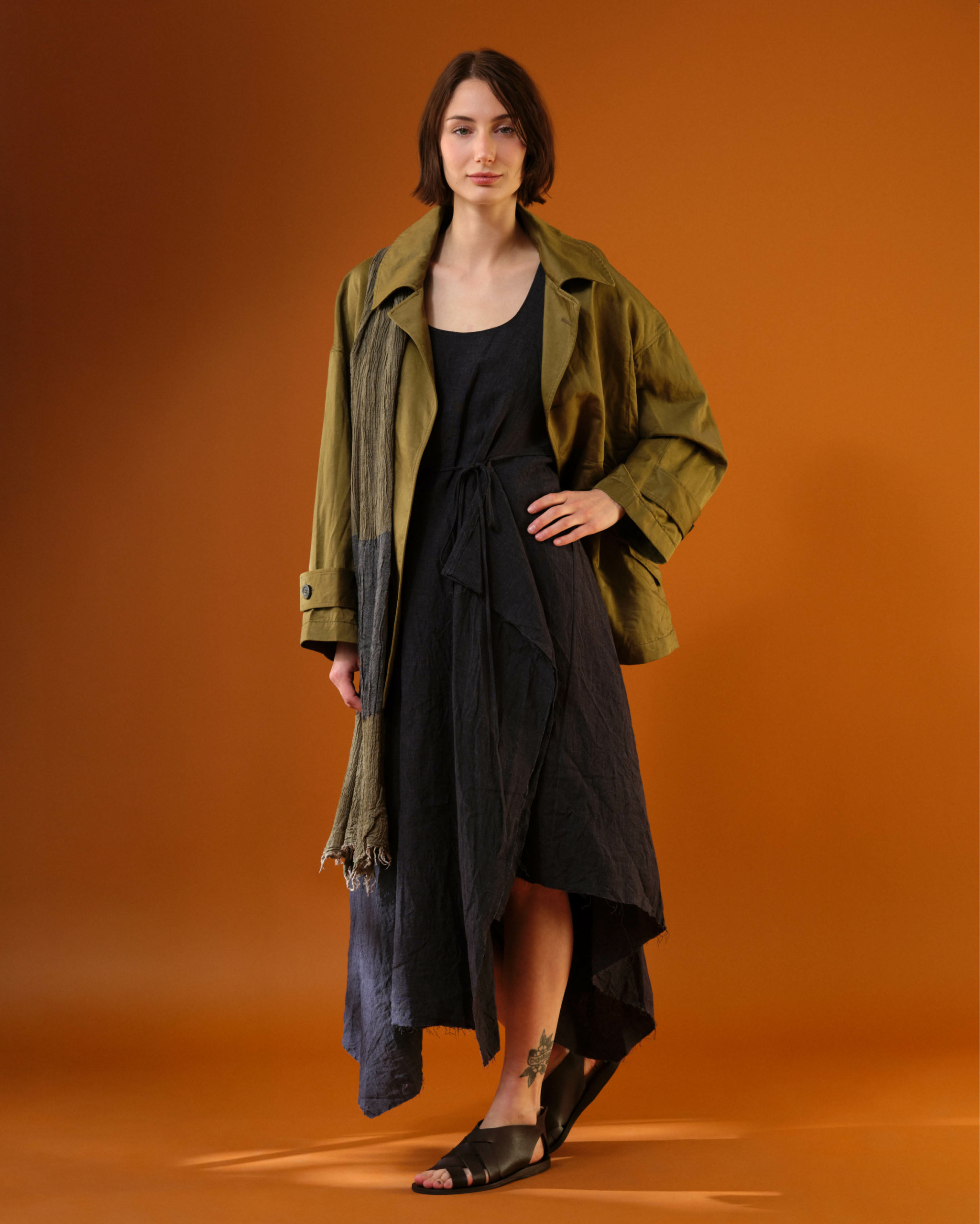 Angelo leads a team of creative designers with a highly skilled range of experience, including theatrical costume design in the UK. Together they give form and volume to natural fiber fabrics with exquisite texture, creating each piece with sensitivity and care in Tuscany and Umbria. High quality is prioritized through a tailored, artisan finish and style with integrity. The quality craftsmanship also speaks to Masnada’s ethical commitment. The company is strongly against the inhumane labor practices of the fast fashion world, particularly child exploitation.