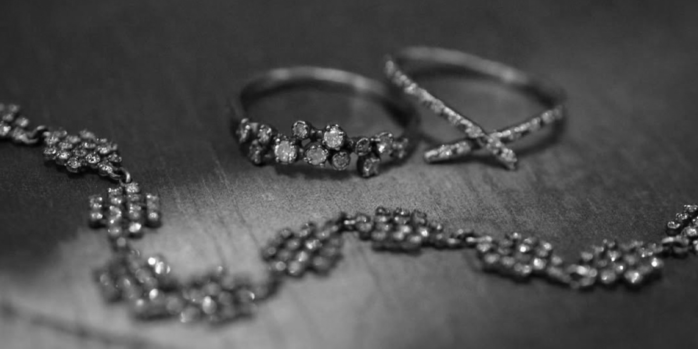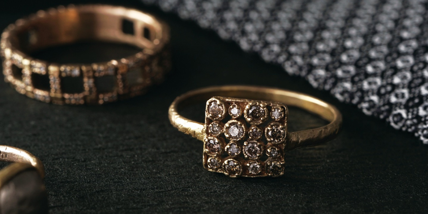Noguchi Bijoux pieces have a delicate old world antique feel to them. Often set with inlaid diamonds, the gold jewelry has a soft glow and lived-in texture. After experimenting with different golds, Naohiko found his ideal in unique 14k yellow and white gold alloys which he prizes for their atmosphere.
