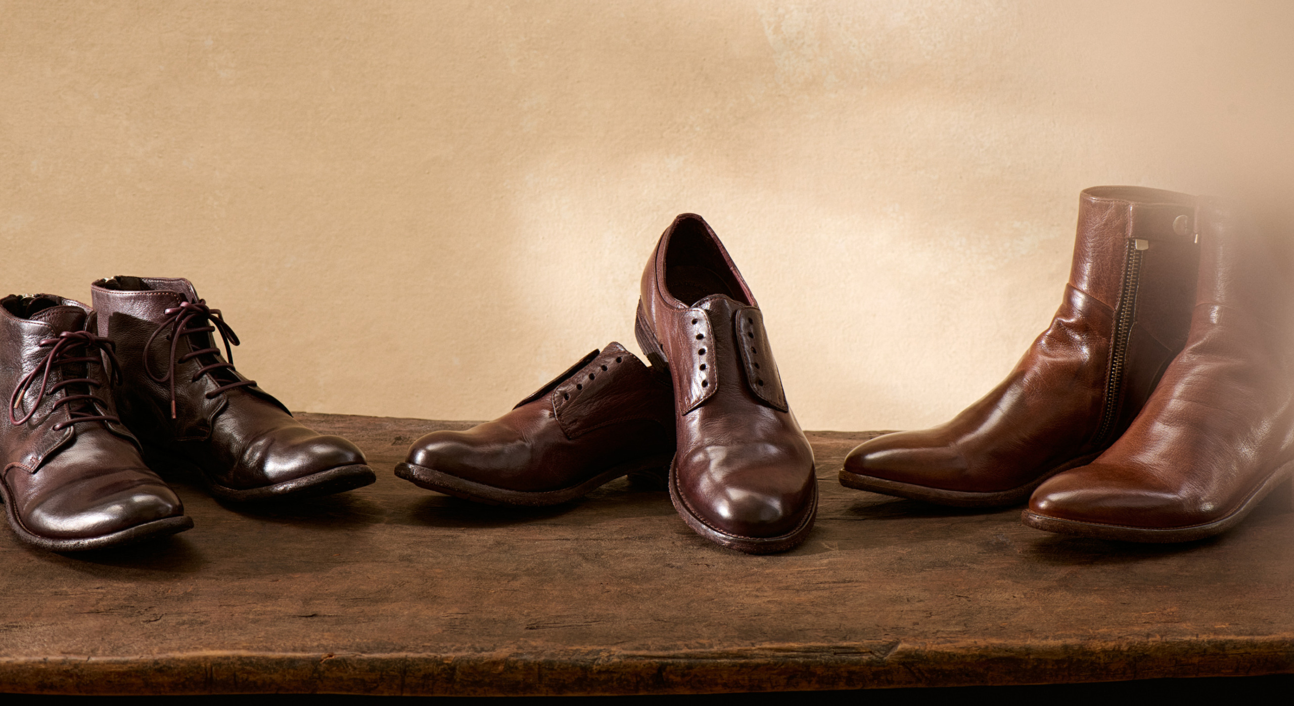 Today, Officine Creative is lead by Nazzareno’s two sons, Roberto and Luca Di Rosa. Together they run the internationally renowned shoe factory Calzaturificio Duca del Nord. The brothers are known for pioneering techniques like washing, burning and object dyeing their leather goods, using over 100 processes to achieve an authentic, lived-in patina for their shoes. They perpetually explore avenues of avant-garde innovation and advancement in their industry, resulting in a unique and beautiful product imbued with individuality and personal attention. Unbound by convention and driven by innovation, this uniquely Italian know-how of shoemaking and leather craft is carefully overseen by a trusted collective of passionate craftspeople within the Officine Creative workshop.