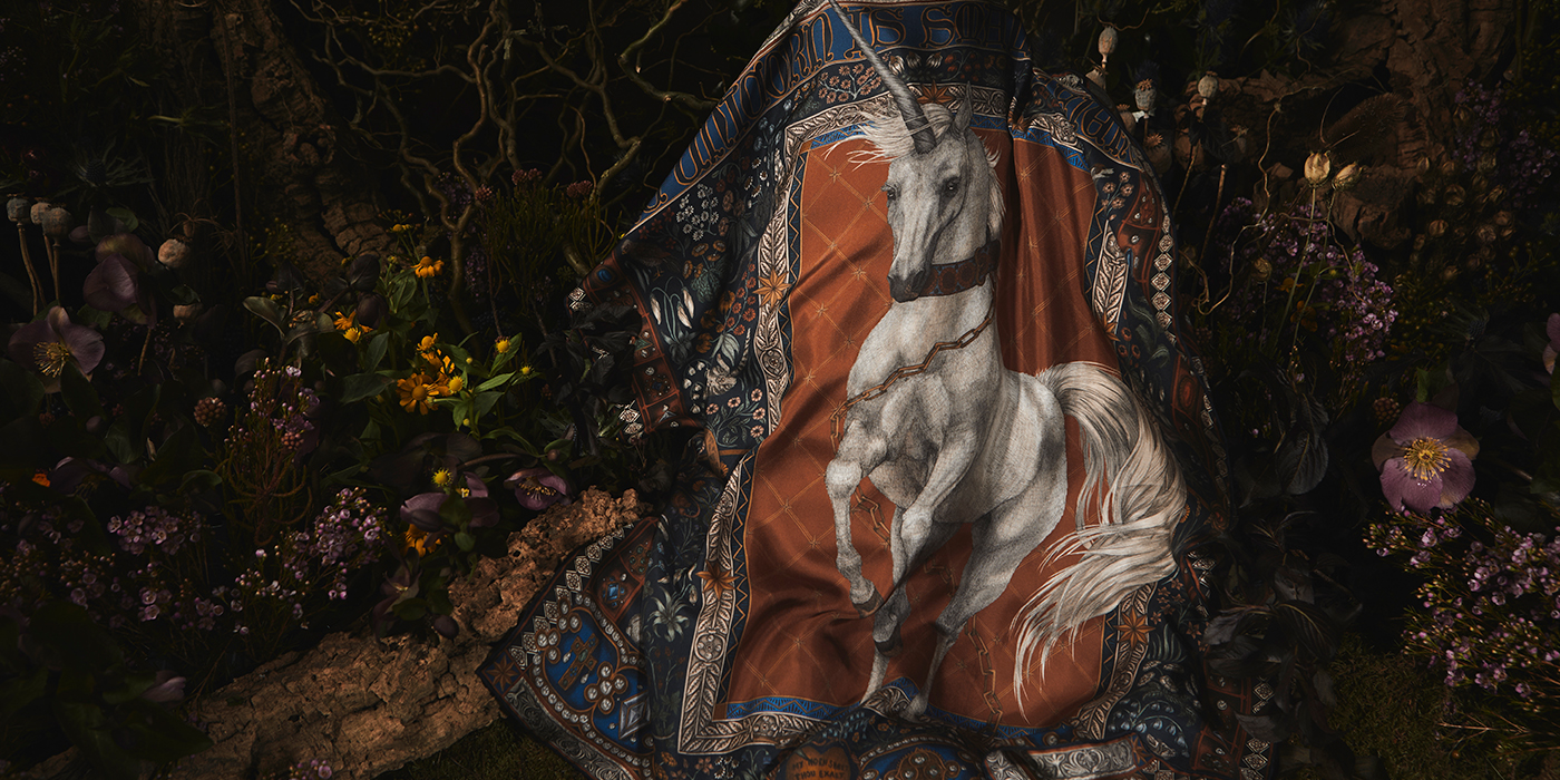 Sabina takes inspiration from all over the world. She creates extraordinary narratives that tell imaginative and detailed stories about the lives of animals both great and small. Sabina’s scarves are an embodiment of her lifelong passion and connection to nature, animals and the cycle of life. The scarves are printed from her deeply textured, kaleidoscopic drawings. The designs embrace mythology to exude an effortlessly mysterious and exotic style.