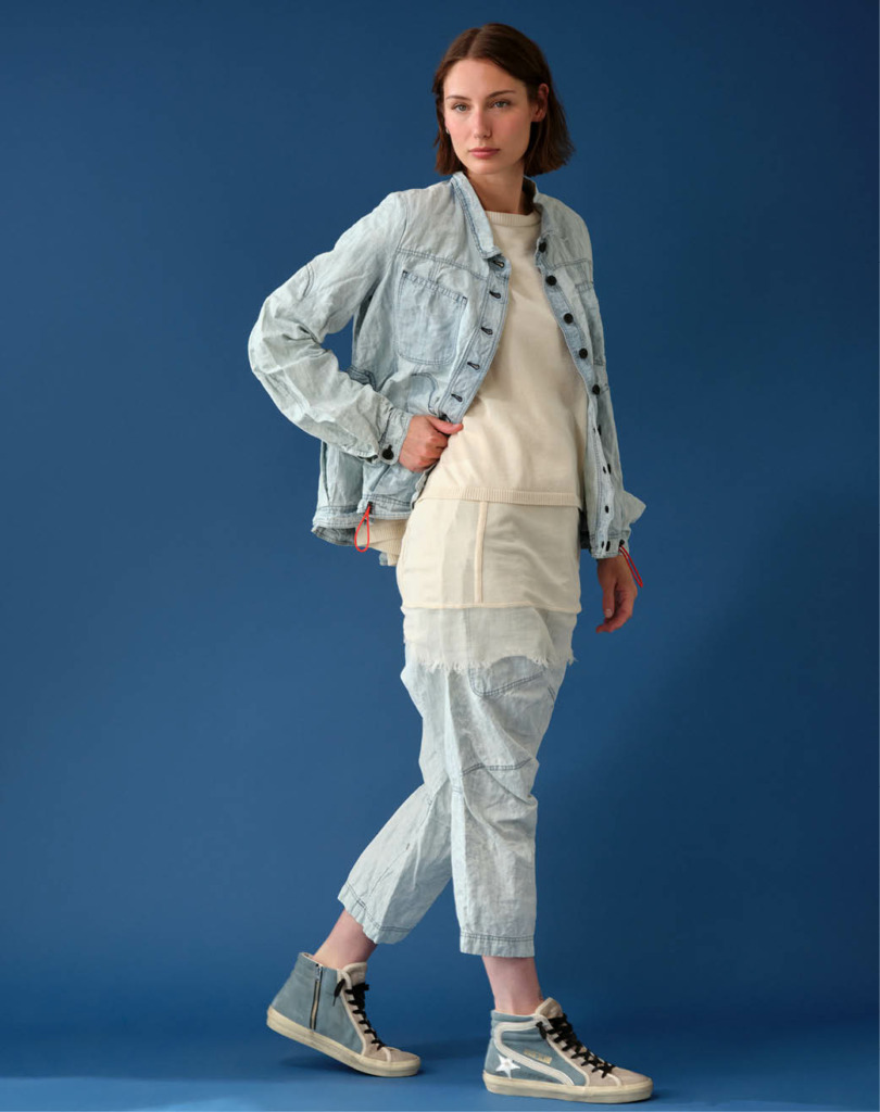 Schepers Bosman works with high-quality and durable materials, with a personal predilection for densely woven cottons and rigid denims, materials that age beautifully over time. These fabrics are sourced from responsible weaving mills in The Netherlands, Italy and England.