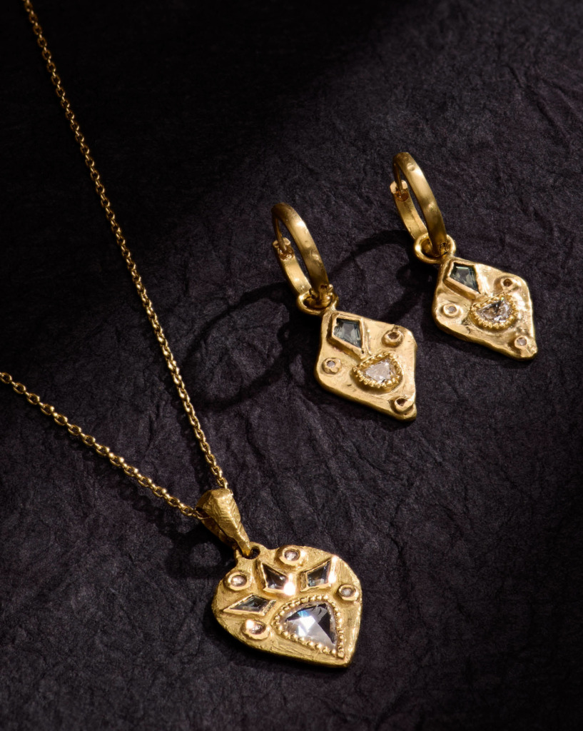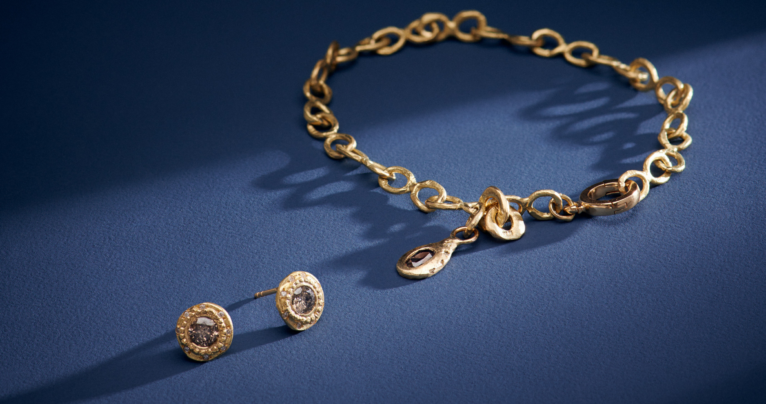 Tovi Farber believes that coarseness and rawness are part of what makes a piece unique; that imperfections are the embodiment of the whole. For Tovi, the point at which color, shape, texture and light all come together is where the piece comes to life. Tovi designs out of a desire to illuminate natural beauty – both of the gold and gemstones, and of those who wear them. Creating all of her pieces by hand from 18 karat yellow gold, Tovi individually selects gemstones for each piece individually, ensuring no two pieces are ever exactly alike.