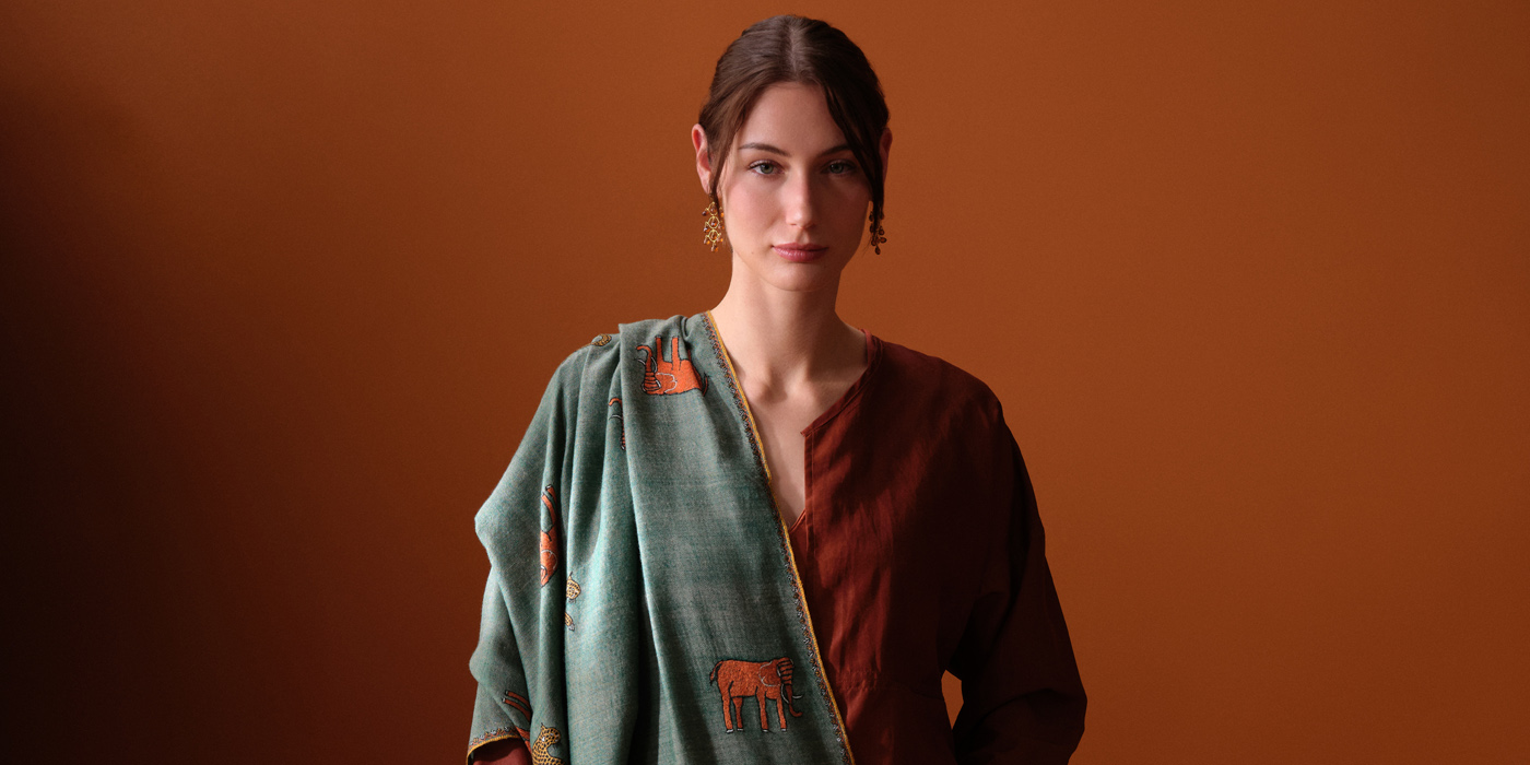 Balancing the age-old and the contemporary, Yaser Shaw designs his pieces to capture the wildness of the natural world and the intense beauty of Kashmir–a place colloquially referred to as “heaven on earth.” It can take Yaser and his team upwards of two years to complete a single shawl. Each piece is made over 36 stages, starting with the collection and carding of the cashmere wool and ending with the fine hand-embroidery of the final decorative motifs.