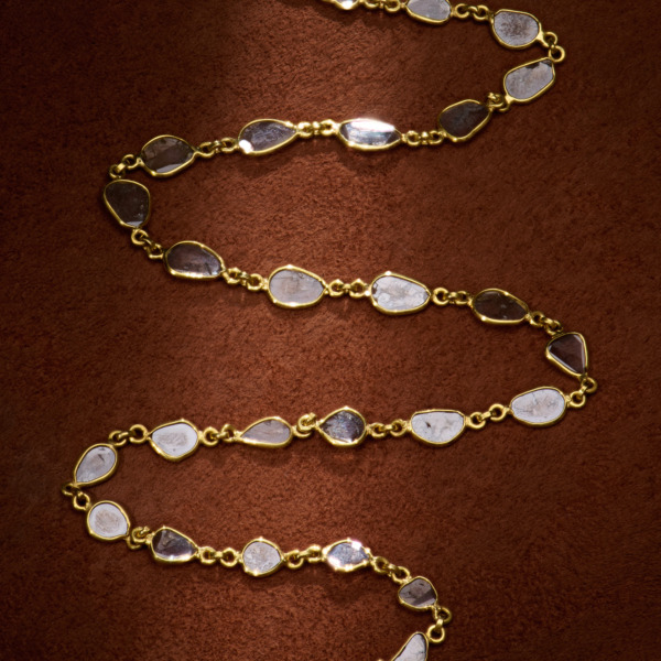 After decades of traveling to the Tucson Gem Show to buy gems for Greig Porter and to work with other designers, such as Todd Pownell and Lika Behar, Shobhan found two exquisite diamond slice necklaces that we are excited to share with you.