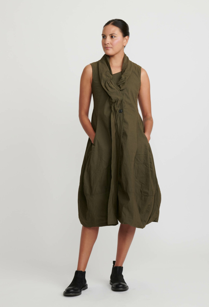 Like a curious traveler discovering an old growth forest – diverse, divine and dauntless – we eagerly explore the varied silhouettes within this ouvre. A-line fitted dresses, sharp coats, slim high-waisted pants and a range of pleating effects abound throughout this delivery. The colors and textures are alluring – familiar and comforting, yet completely innovative and mysterious. In this, Carsten and Lenka weave a tale of texture like an untouched wilderness on the edge of the urbane path.