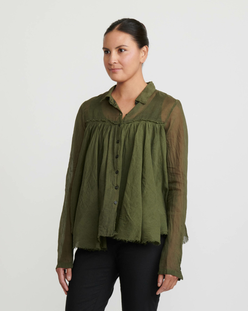 Through a stylized and deliberate patina, designers Carsten and Lenka create clothes that seem to tell their own stories – a washed jean jacket bleached by a trek through the desert; distressed cashmere sweaters stretched loose and cozy from months of storied travel; a cotton skirt that gathers panels of fabric like stamps in a passport.