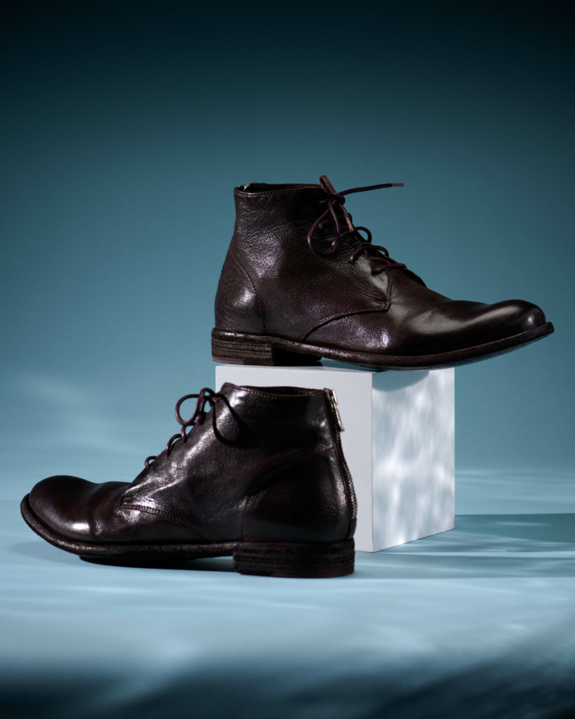 In addition to their iconic silhouettes, Officine Creative is famed for their use of a “Leather Time Machine,” wherein 100 different processes are applied to each shoe to prepare it for wear. This encapsulates a range of techniques, from breaking in the toe box and hammering the sole to maximize comfort, to oiling laces and burnishing the leather to achieve an authentic, lived-in patina.