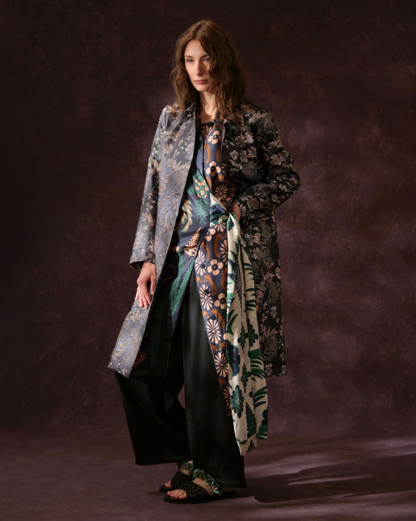 If Biyan Wanaatmadja’s spring was a lush symphony, his fall delivery is its resplendent crescendo. The Indonesian designer has deepened his visual foundation, layering sweeping silhouettes, vibrant prints and fascinating texture into his already maximal approach. Biyan’s palette oscillates from rich emerald and cobalt to luminous pink. The silk fabrics are smoothly embellished with gold and silver filigree. In celebration of this feast for the senses, please enjoy our lookbook of Biyan’s most incredible works for the Fall/Winter 2024 season.