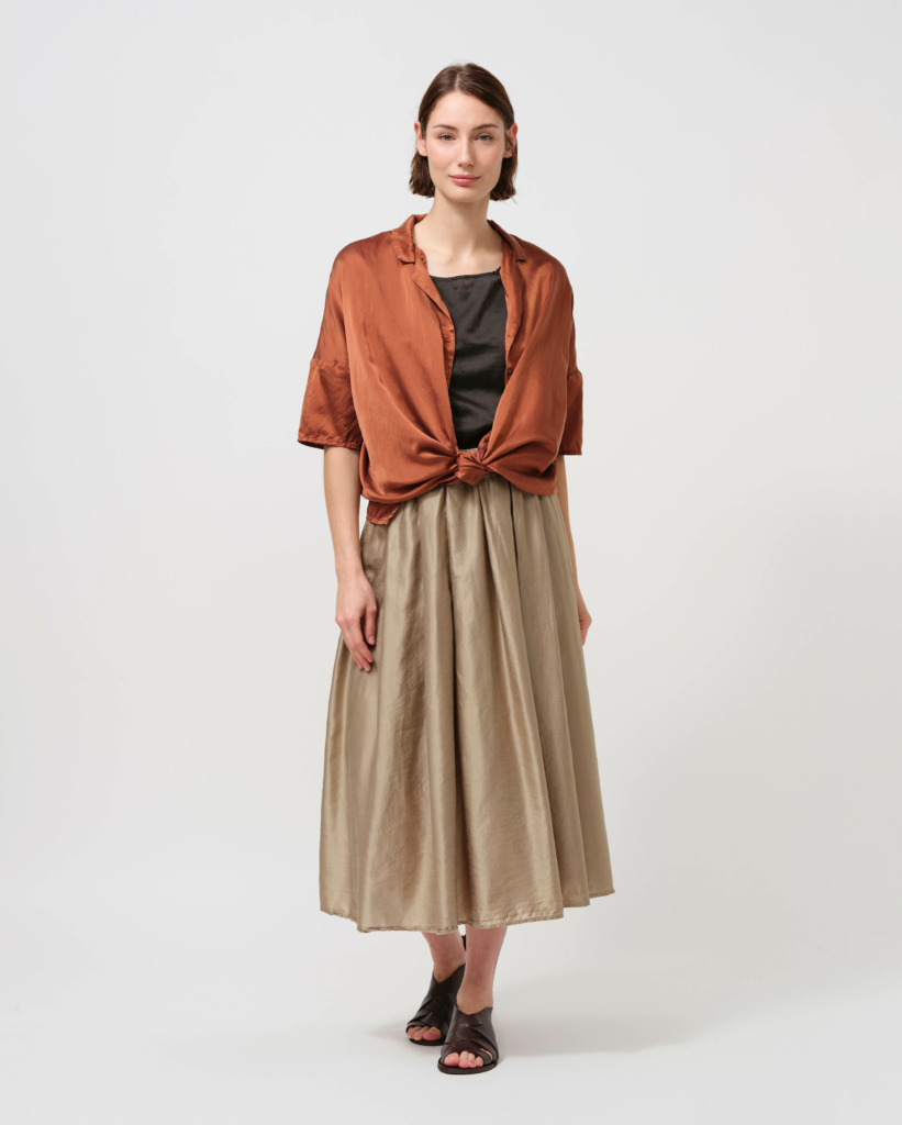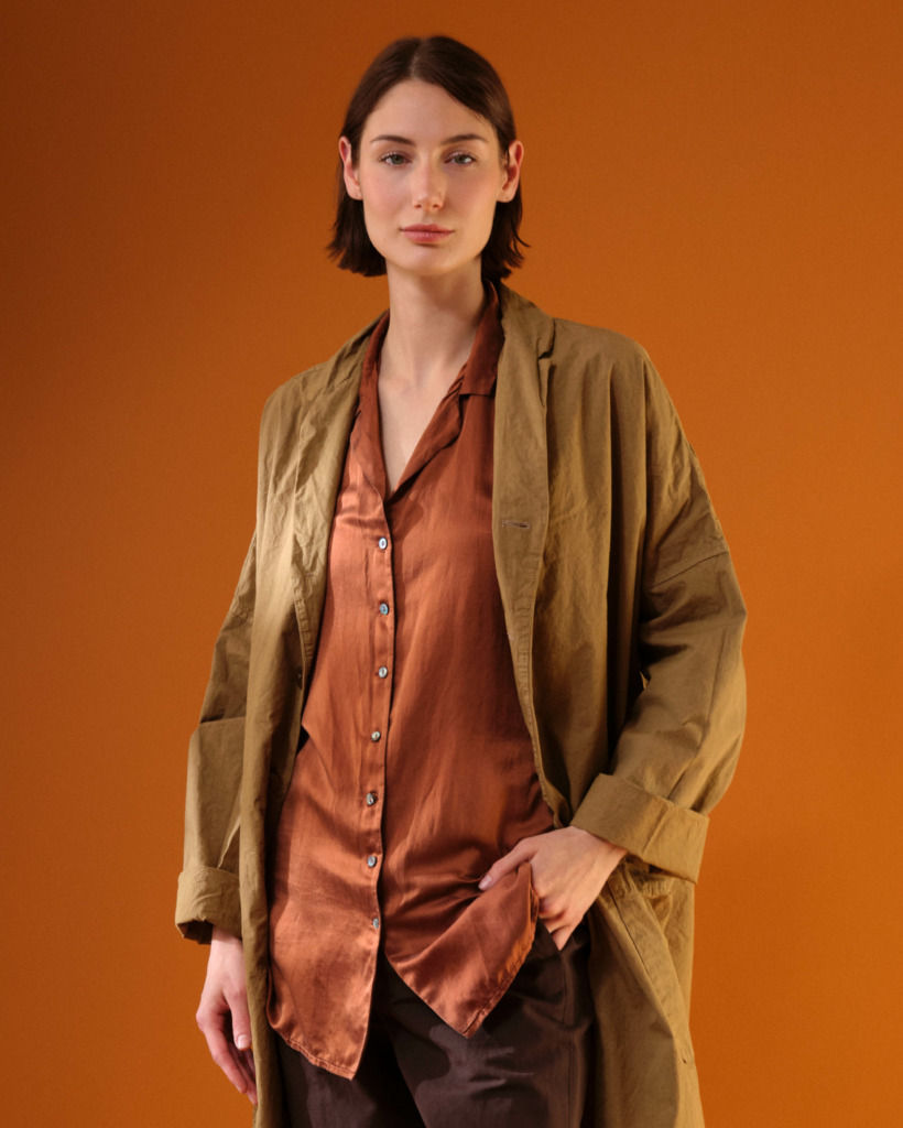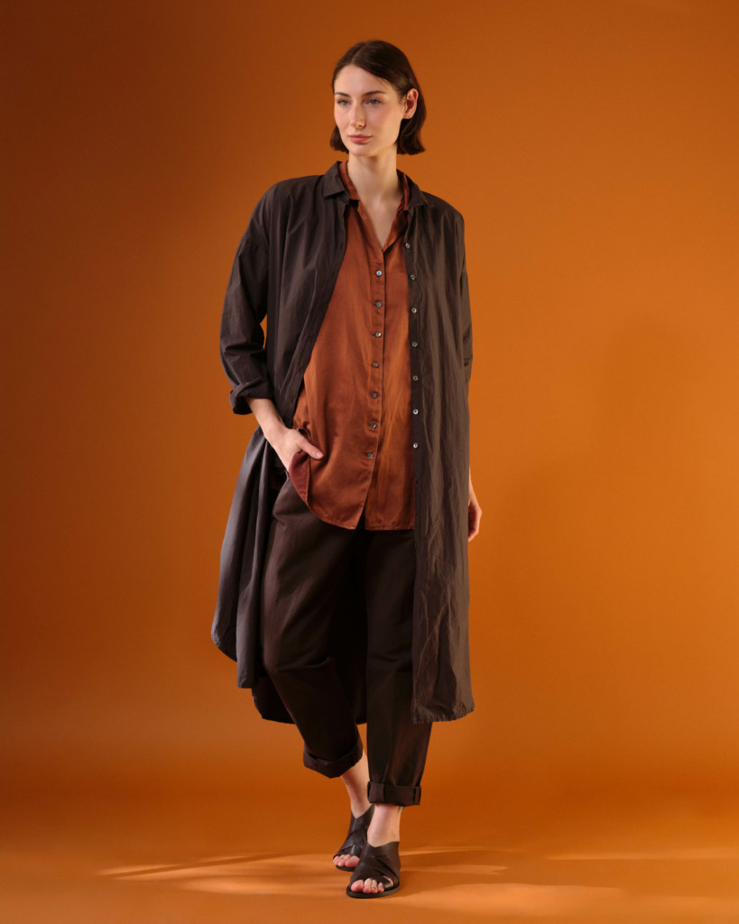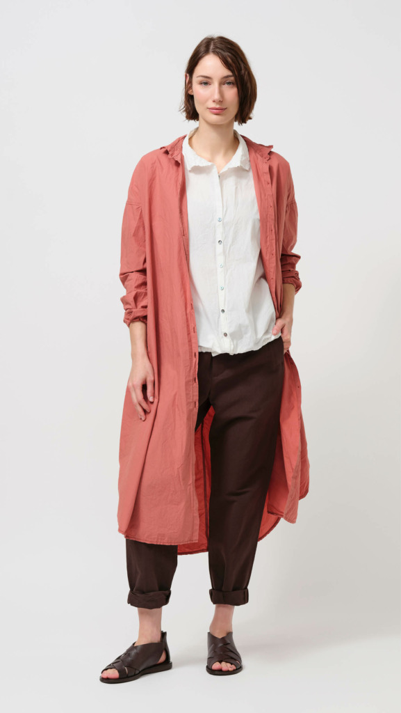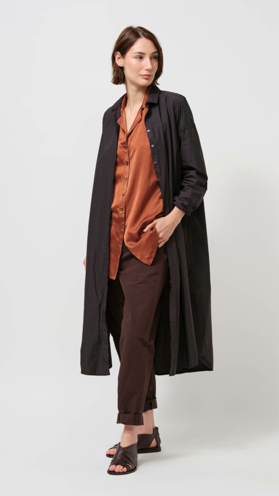 The family’s Spring/Summer 2025 delivery builds upon twenty-five years of atelier mastery. Soft and deliciously layerable, the collection is made up of paper cottons and slippy silk blends in a mix-and-match presentation of rust, coral and umber. While these pieces are perfect for a walk around town or a trip faraway, the Album wardrobe is so soft and easy to wear, you may just be tempted to nap in them too.