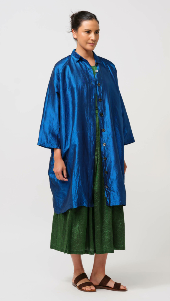 Our latest delivery from Christian Peau has arrived in all its shimmering glory. The colors of the silks sing—deep jewel tones of green and blue, earthy hues of terracotta and orange as well as a playful pink gingham.