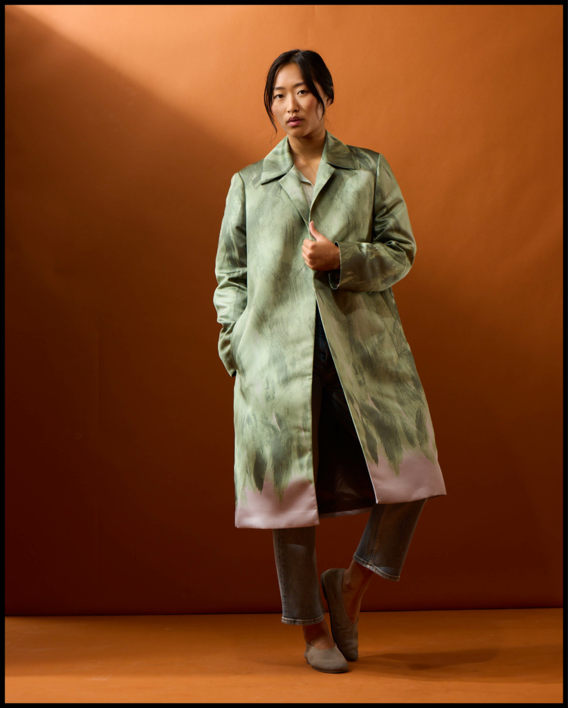Roltas Brush Strokes Coat in Green & Mauve