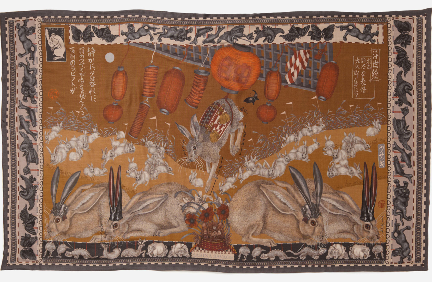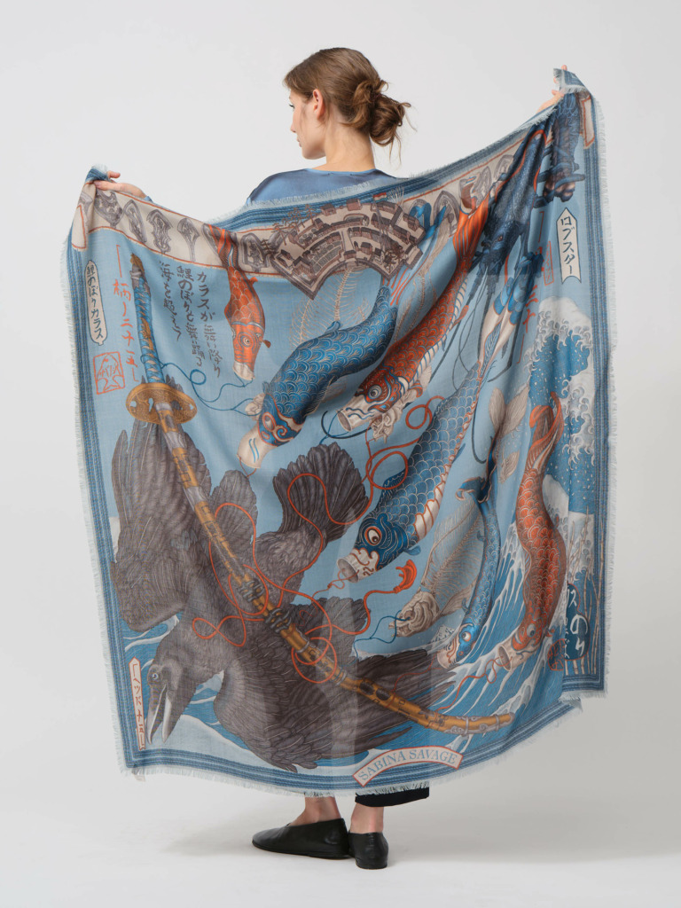 Sabina Savage, while a keen designer, is a storyteller at heart. In addition to the newest illustrations from Escape Into Edo, we invite you to explore other odes from Sabina Savage’s archive, such as A Tale of Tibet and Mythos, Sabina Savage’s interpretation of Ancient Greek lore. We seek Sabina Savages pieces for our stores again and again (even years after their initial production) because not only are they visually striking, but because their stories continue to resonate.