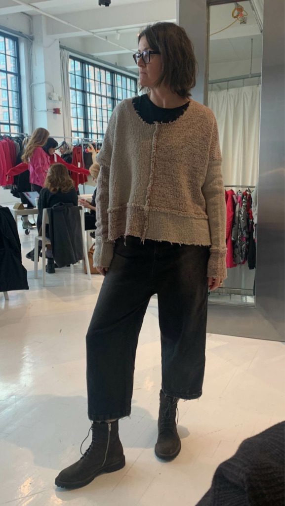 The Rundholz buy is always a lot of fun (and a lot of work!) We block off an entire day to spend in their NYC showroom–a large cavernous space filled with light, laughter and many layers of fabric. This is our challenge and our pleasure each season… to drink some coffee, break out our notebooks and work our way through the dozens of racks to find the pieces that will work best for you.