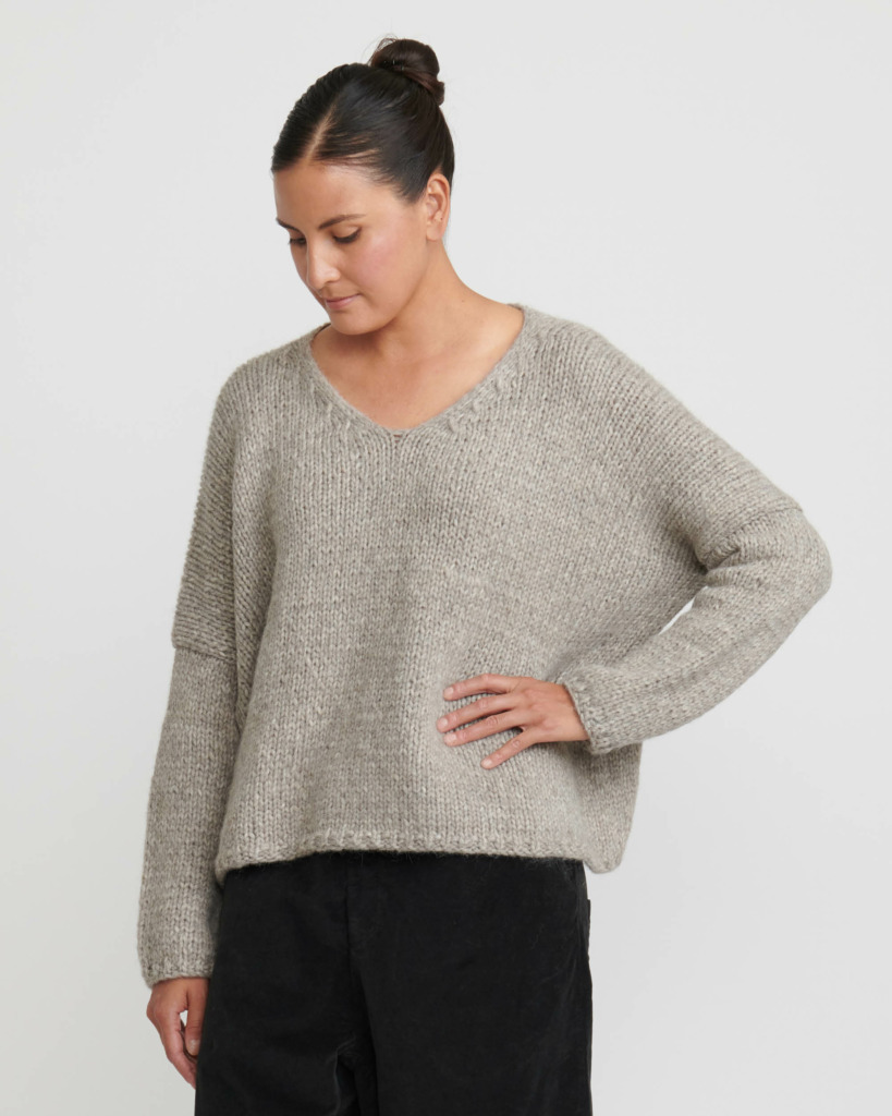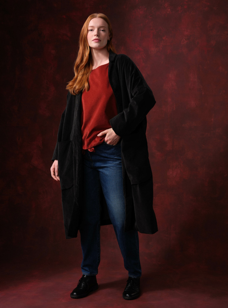 Layers of crumply cotton velvet and nubby handknit sweaters feel like a postcard mailed with love from a far off place, or a far off time – particularly, the rolling hills of Saksun, a remote village tucked in the Faroe Islands.