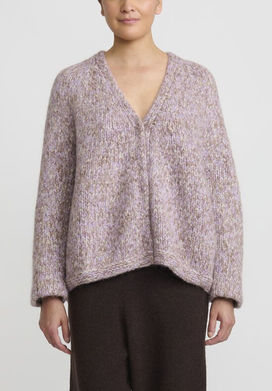 Layered together with knits in cream, taupe and rich chocolate brown, the addition of a dusky violet underscores the earthiness of this delivery.