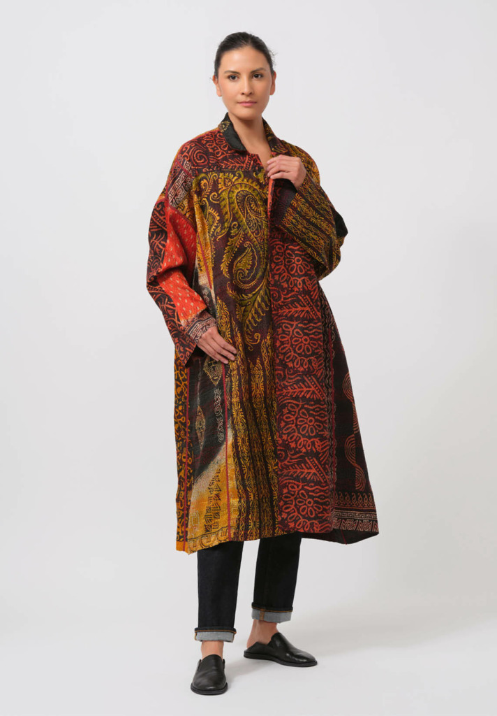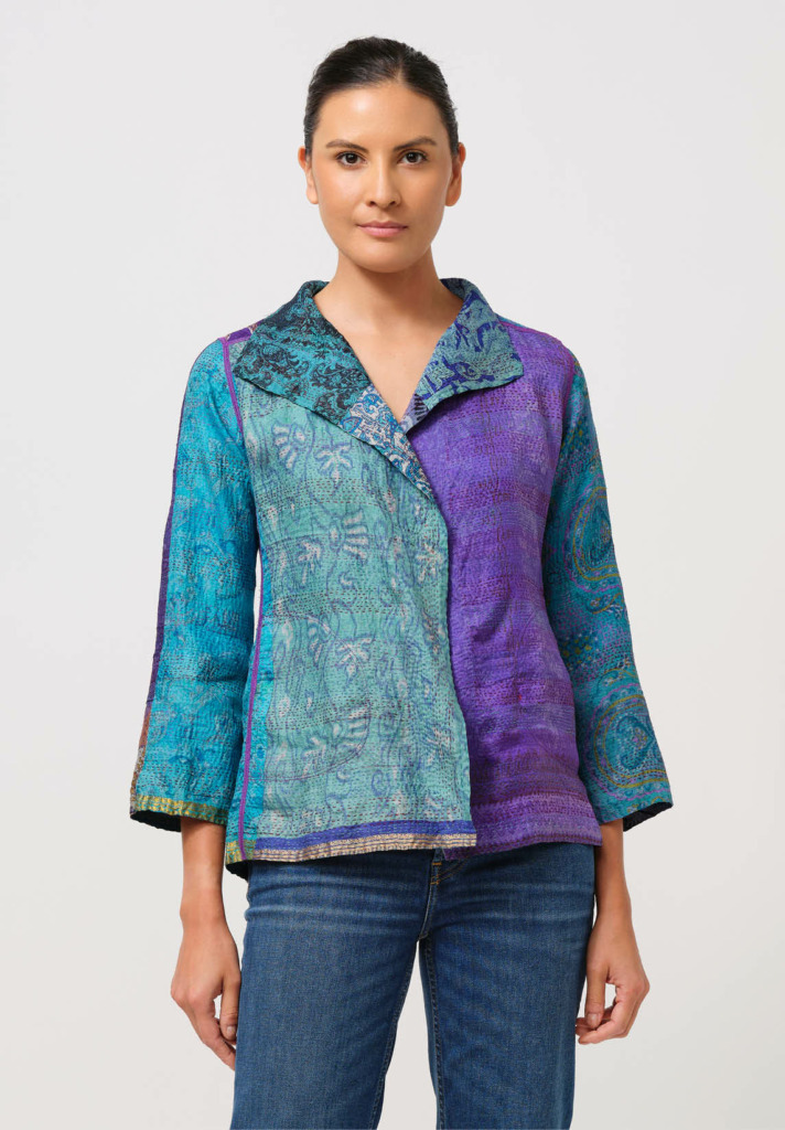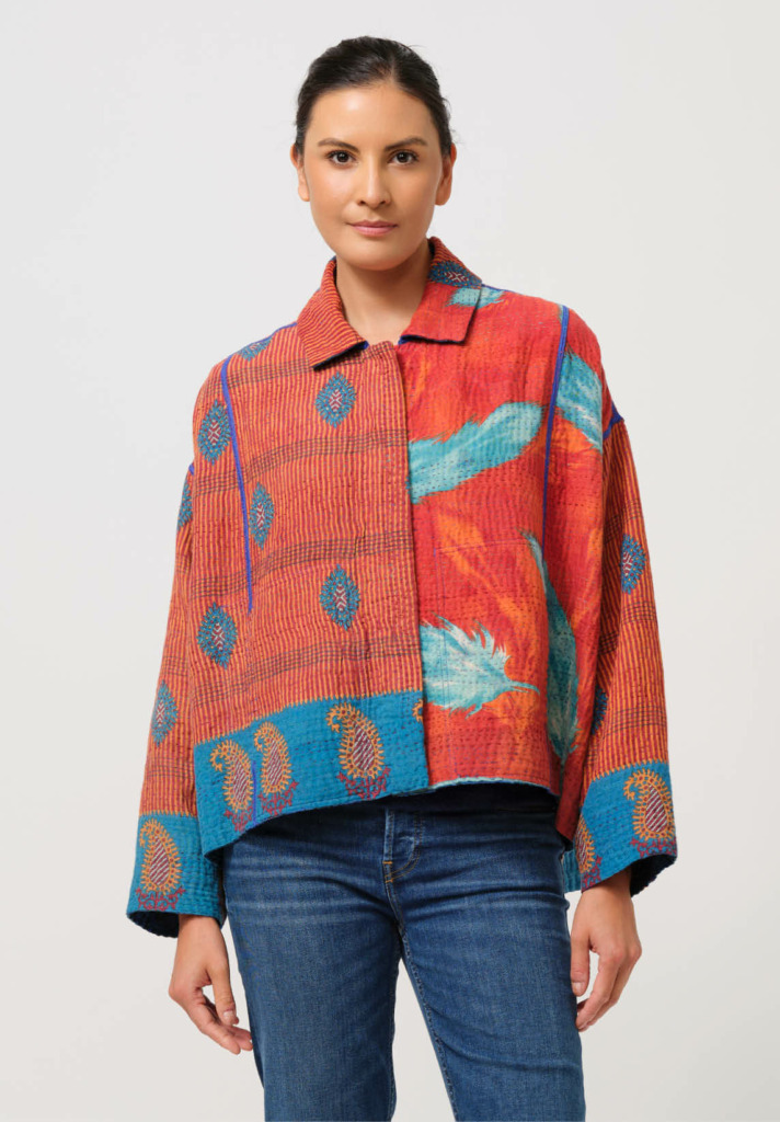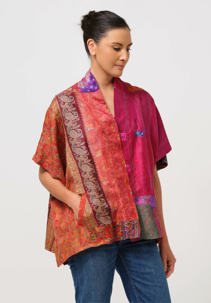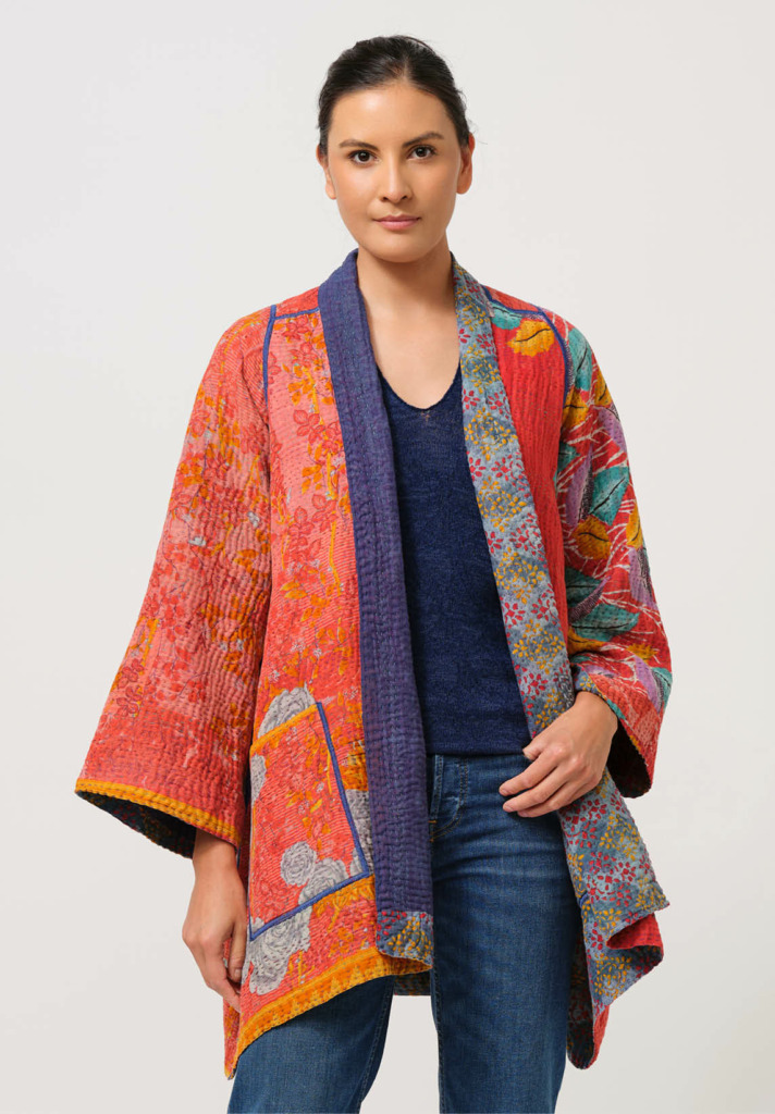 The secret is in her construction. To make her pieces, Mieko and her team double, triple and quadruple layer vintage silk and cotton to create a final stitched textile thick enough to withstand the bluster of spring. The natural fibers are breathable for when the day heats up, and if you need to shed a layer a Mieko can be easily stowed in a bag without wrinkling or losing its shape. Another bonus? Every Mieko is reversible, often with a completely different, but complementary, color scheme on the interior (and pockets on both sides!) Within her work, enjoy a two-for-one in every way that matters — and a bit of verve to boot.