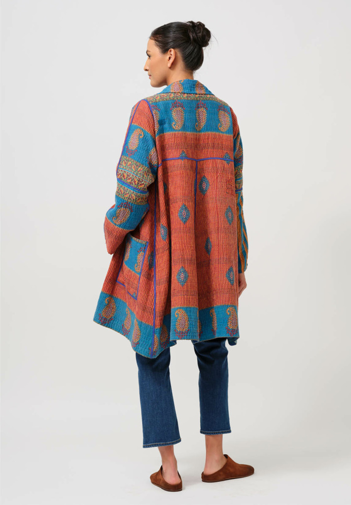 New to Santa Fe Dry Goods: a fresh crop of colorful jackets and coats from the Kanthanist herself, Mieko Mintz. While we brave March’s temperamental weather, comfortable layers become our most valuable asset. If you’ve encountered her collection previously, you know Mieko’s work is great for an easy infusion of color and globality. What’s less known is just how warm and durable her one-of-a-kind designs can be.