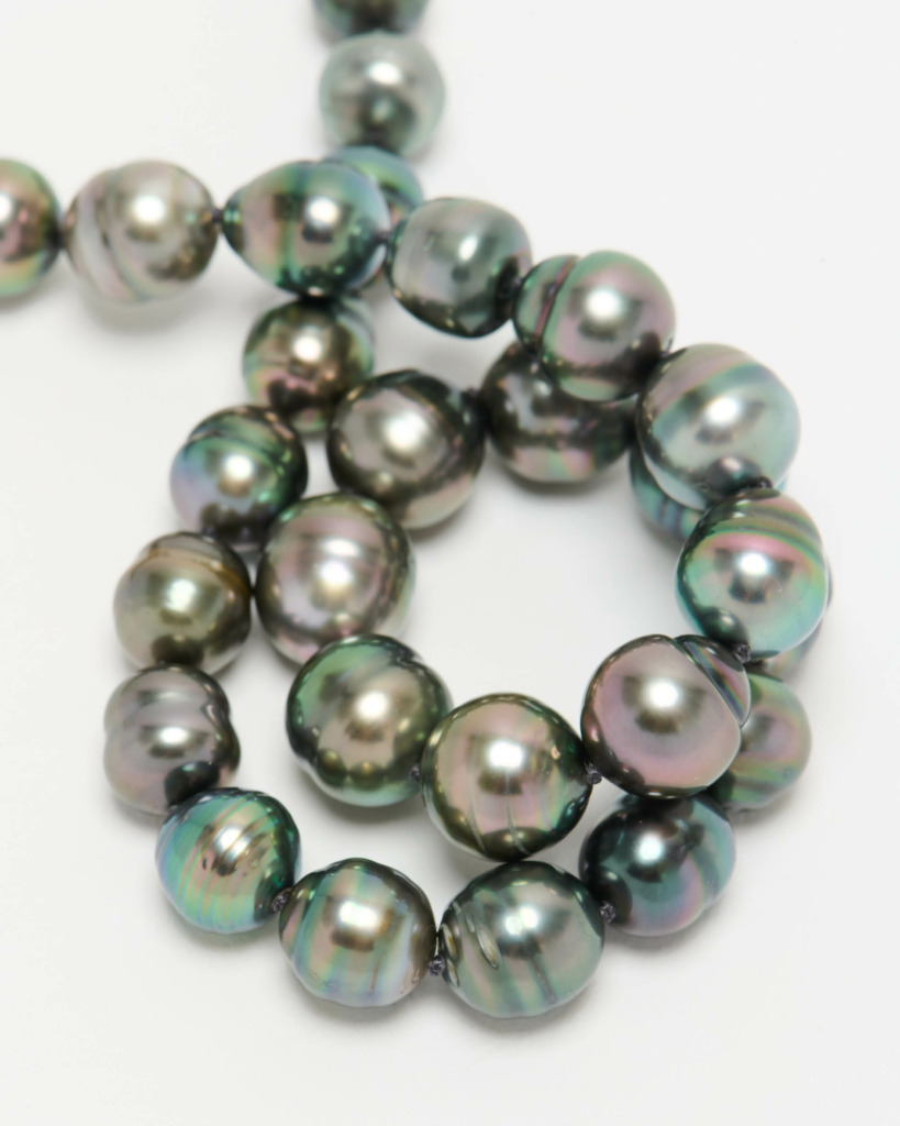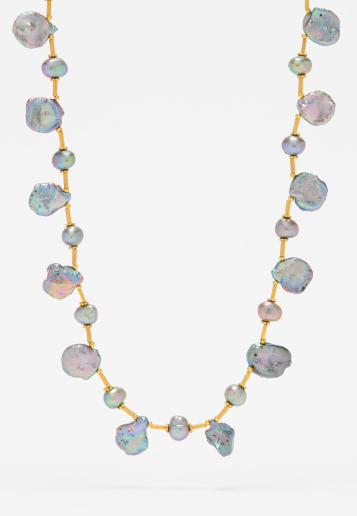 POLAR PEARLS: Last, but far from least, a spotlight for Jean Prounis’ Tahitian pearl collar. Classically set, this piece features a 22K, Mycenae-inspired fibula closure so detailed you may be tempted to wear it clasp-forward. A particularly dark and iridescent varietal, these pearls glow like the sky in moonlight.