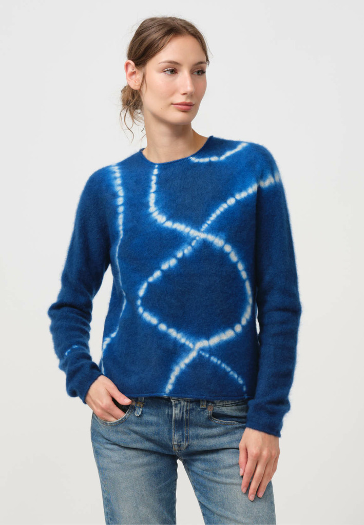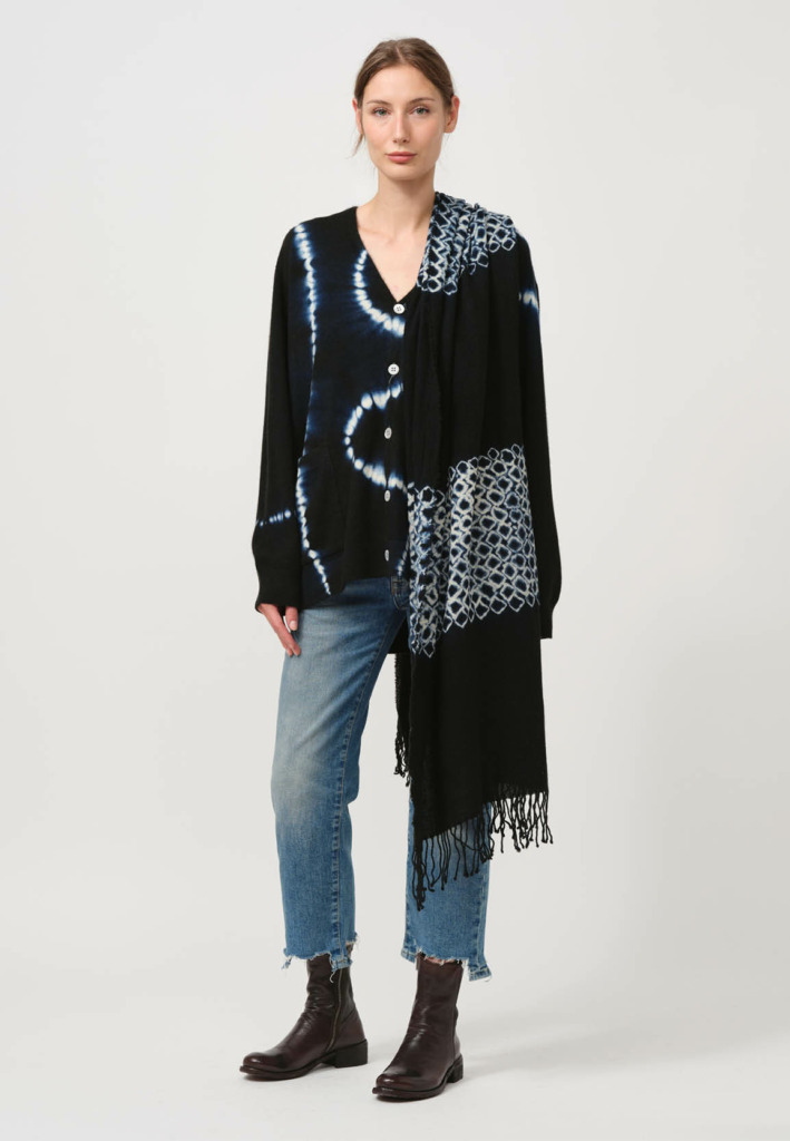 As a fifth generation artisan, Hiroyuki’s family has been practicing this art for over 100 years. In fact, his hometown of Arimatsu, Japan, is a mecca of the craft. Today Hiroyuki Murase of Suzusan takes this centuries-old practice and translates it for the contemporary wardrobe, creating lush, sophisticated motifs across cashmere and alpaca knits. As the year winks closed, please enjoy this small, plush delivery of blues from the Suzusan studio.